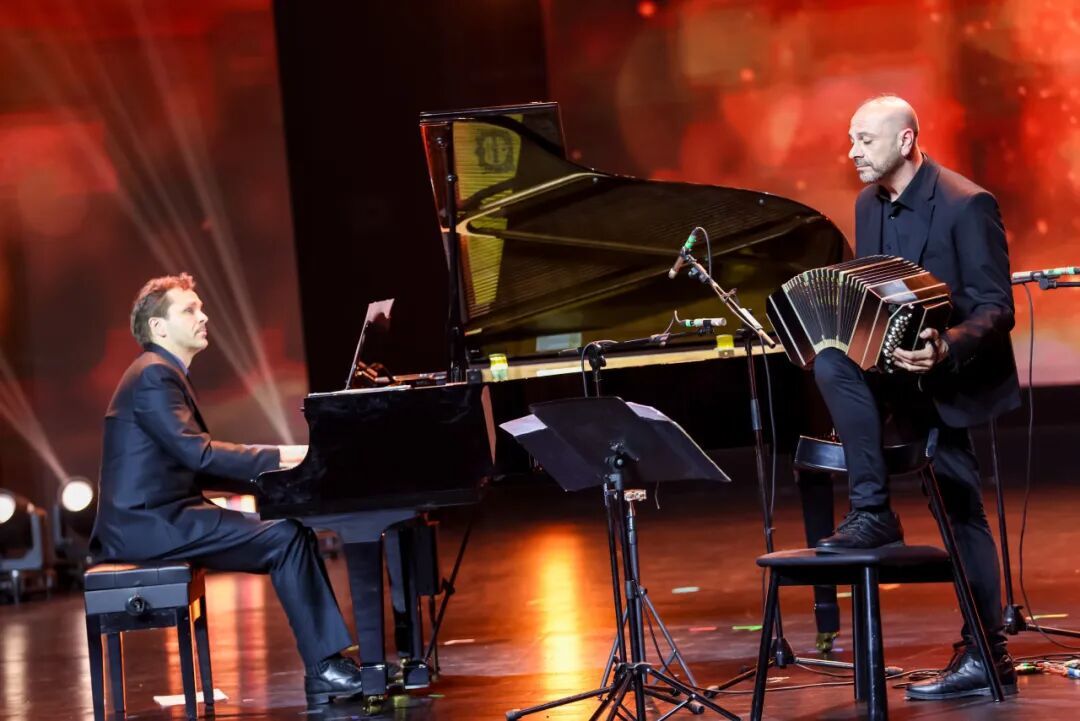班多钮与钢琴的对话,为现场带来别样的浪漫与深情。意大利班多钮演奏家马尔科·杰梅利与定居上海的意大利钢琴家丹尼尔·埃斯彭联袂演绎《爱的主题》《罗塔组曲》,被誉为“探戈之魂”的班多钮,与温润雅致的钢琴相互呼应,风箱开合与琴键流转间,让经典旋律绽放全新光彩。