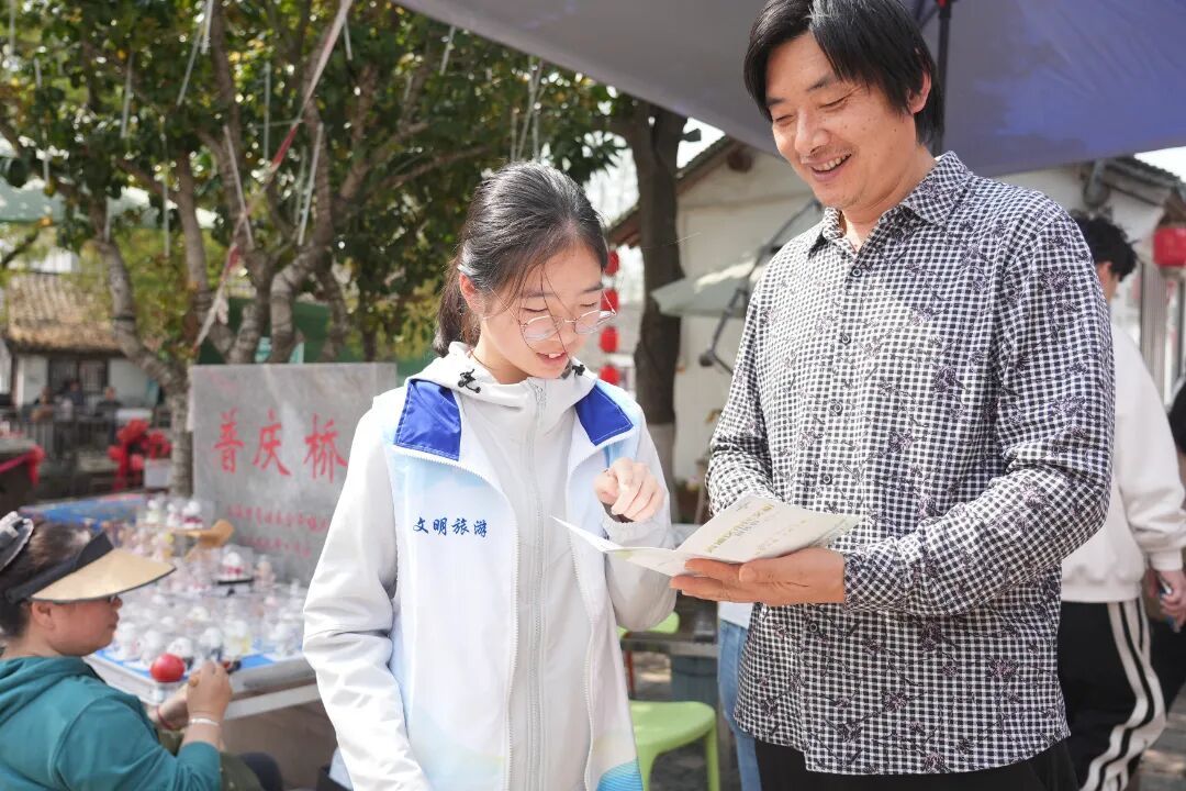 此次活动将文明实践、志愿服务与古镇文旅、非遗体验有机结合,分别打卡金泽桥乡六个景点,让参与家庭在行走中赏古桥、学知识、践文明。“今天看到这么多亲子家庭放弃休息时间,主动参与到文明旅游志愿服务中来,我非常感动。尤其是孩子们,他们捡垃圾时的认真劲儿,劝导游客时的礼貌大方,让我看到了文明传承的希望。”志愿者薛晓英说,“作为上善银辉志愿者,我很高兴能和大家一起,用‘大手牵小手’的方式,把文明的种子播撒到更多人心里。”