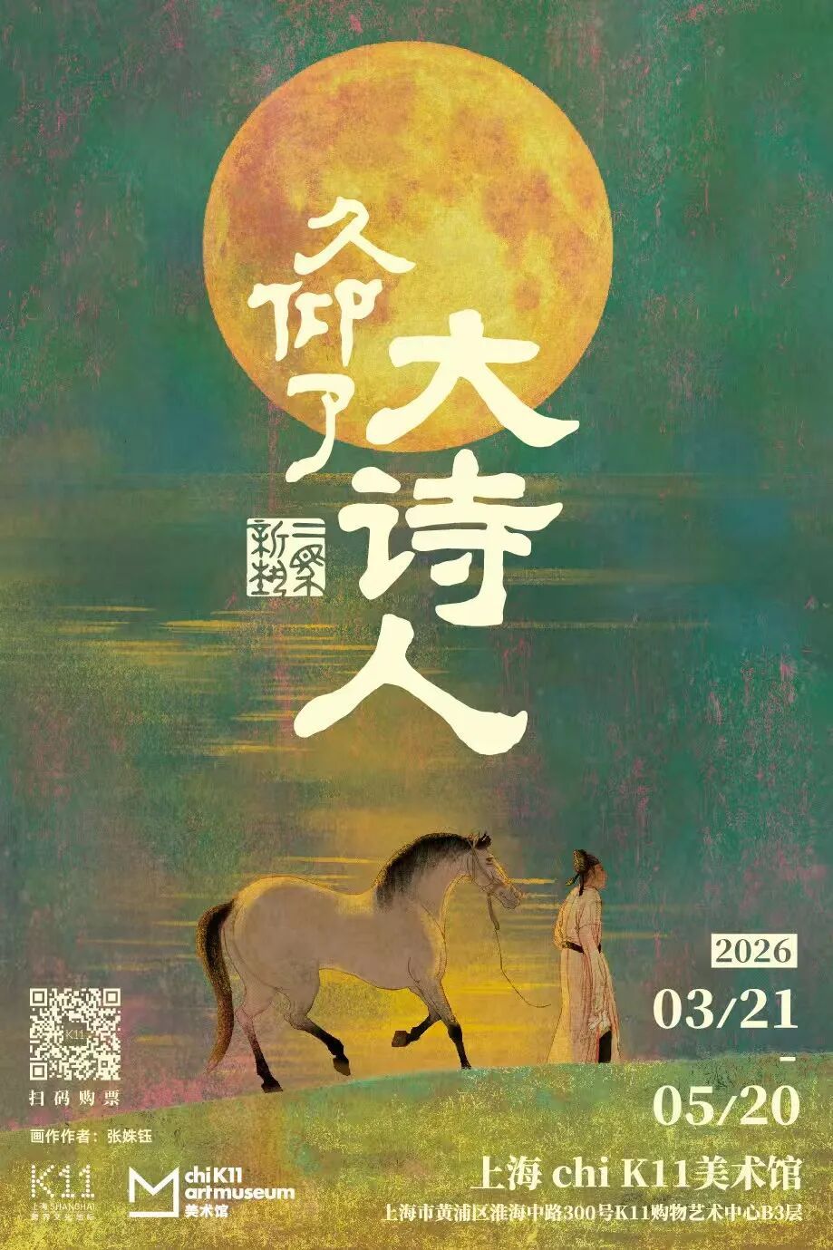 展览以中国古代诗人与诗词为核心,携手七位知名国风插画师,以绘画、光影、雕塑装置、数字人动画等多元艺术形式,鲜活呈现李白、杜甫、白居易、苏轼、李清照、辛弃疾等九位大诗人的生命与创作。