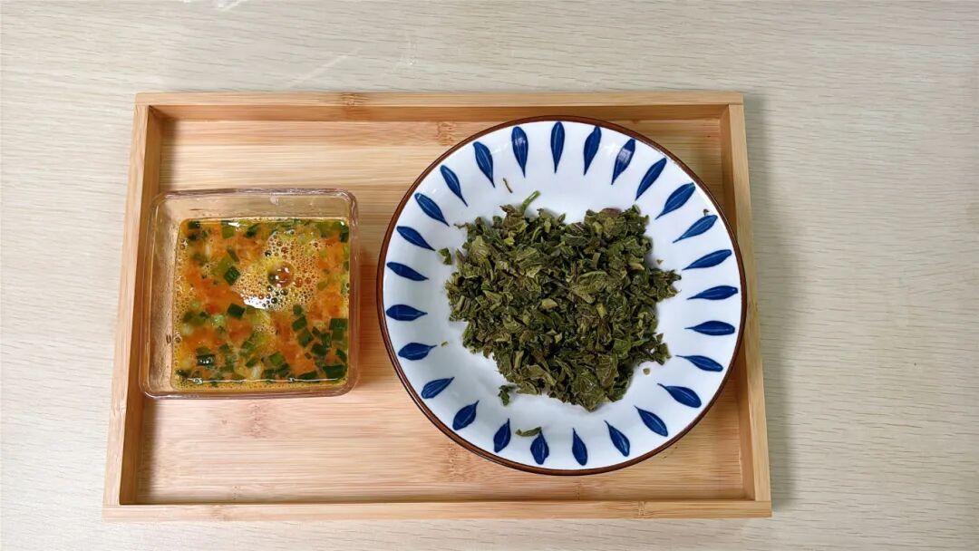 1.香椿焯水过凉,挤去多余水分切碎。