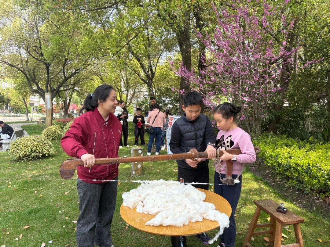 平南小学四年级学生朱翊涵激动地表示:“此次活动不仅是一堂生动的科普教育和非遗体验课,更是对两位科学家的致敬和对科学创新的使命担当,在清明节体验这场活动很有意义。”来自华东理工大学化学专业的俄罗斯留学生天墨说道:“通过今天的活动,不仅了解了中国的棉花故事,更对温暖人心、造福民众的科学家由衷地产生了敬佩。”