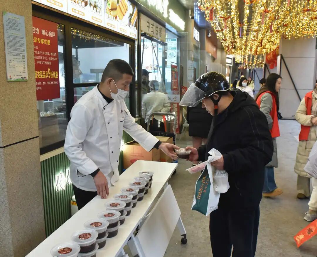 壹号饭堂的善意藏在日常的细节里。每逢腊八,李君伟都会提前两天开始准备食材。红豆、莲子、桂圆、糯米......满满当当的料,在大锅里慢慢熬煮,香气从后厨飘出,勾得路过的人驻足。500多份腊八粥,被一碗碗端到社区居民、外卖员、环卫工人手中。“壹号饭堂的粥,料足、好吃、暖心。”长期患病卧床的李老伯吃着居委会送来的爱心腊八粥频频称赞。