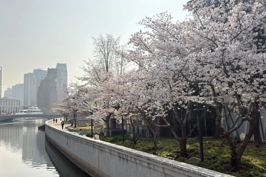 樱花谷驿站位于南苏州路虎丘路交界,紧临“一江一河”的交汇点。每到樱花季,沿河小路上樱花满树绽放,与复古的红砖建筑、苏州河碧波相映成趣。周围伴着樱花飞舞,附近总有不少市民趁着好天气来这里赏樱打卡。