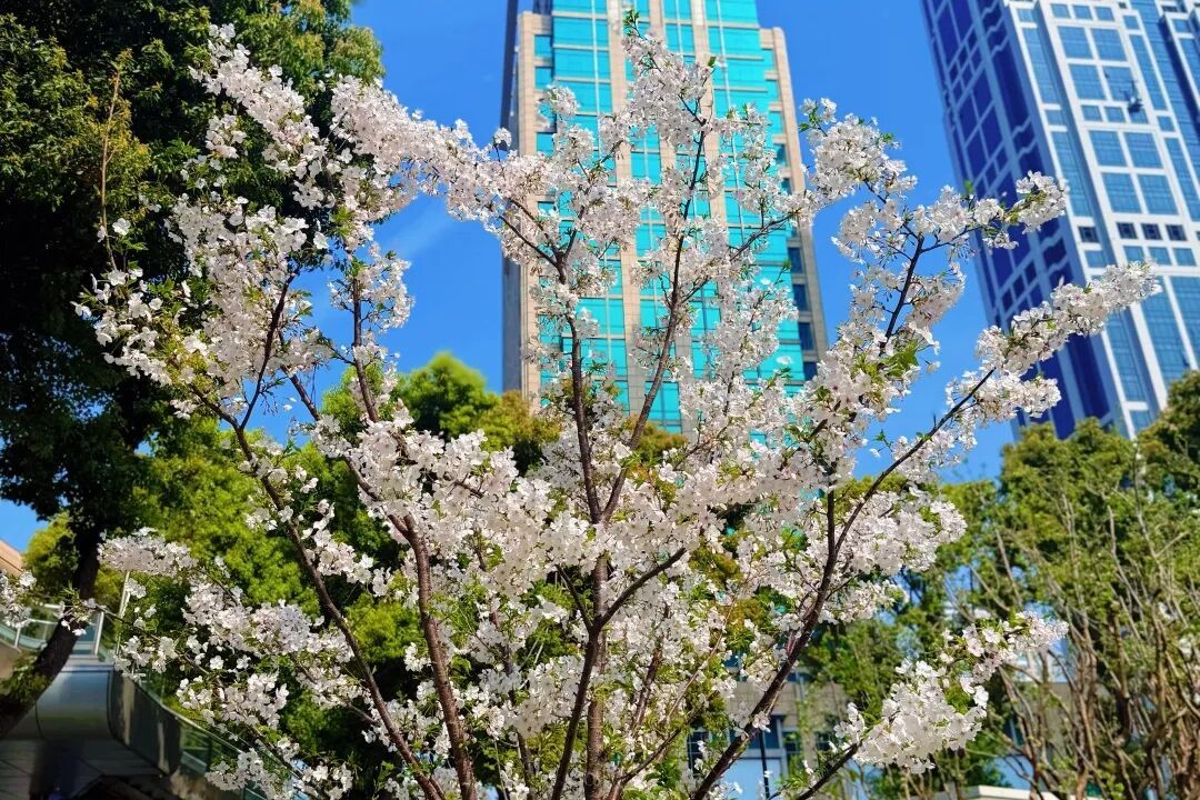 这份姗姗来迟的春日浪漫,终于在日前达到了颜值巅峰!更幸运的是,今年气温平稳,花期拉长,我们甚至可以在近日欣赏到比往年更持久的“樱吹雪” 。