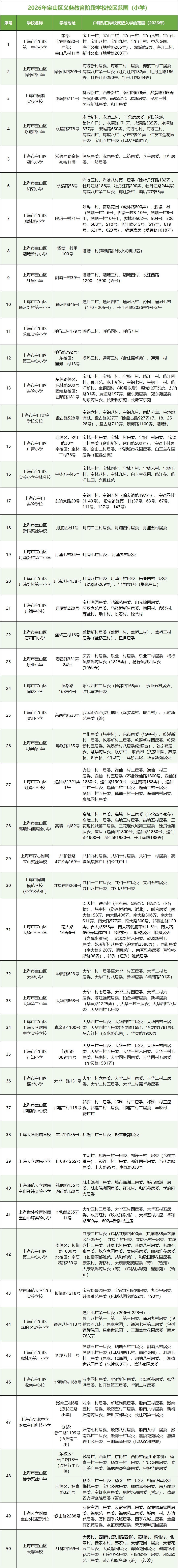 宝山家长们最关心的2026年宝山区义务教育阶段学校户籍对口校区划分来了!共计92所小学及68所初中的校区范围及招生计划都在这里。赶快一起来看看详情吧↓↓↓ 2026年宝山区义务教育阶段学校校区范围 (小学) 点击图片查看大图↑