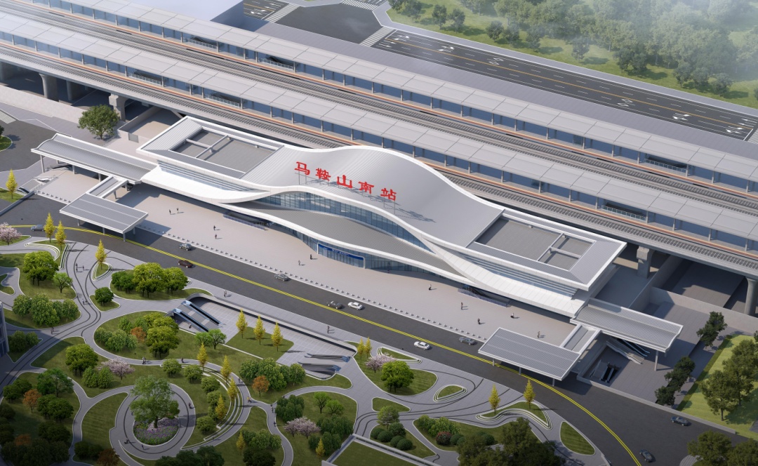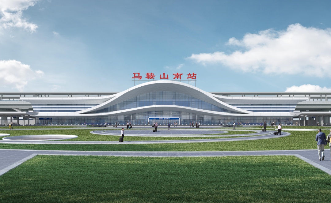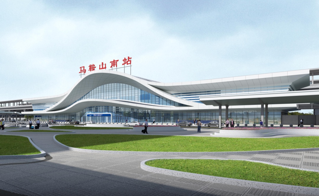 马鞍山南站新建站房,总建筑面积11998平方米,主要包含站房建筑结构工程、装修工程、给排水及消防工程、通风与空调工程、建筑电气工程等。站场规模为2台6线,设岛式站台2座,站台雨棚结构及装饰。