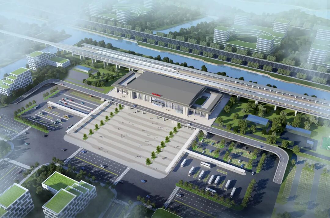 站房以“港城新区城市门户开放包容再立华章”为设计理念,三段式的建筑布局让整个建筑中部主体更加突出,从舒朗大气的立面造型、简洁稳重的建筑主体到丰富细腻的室内空间,结合长江和港口文化,充分体现现代工业产业园“开放包容”的精神和“城市门户”的形象。