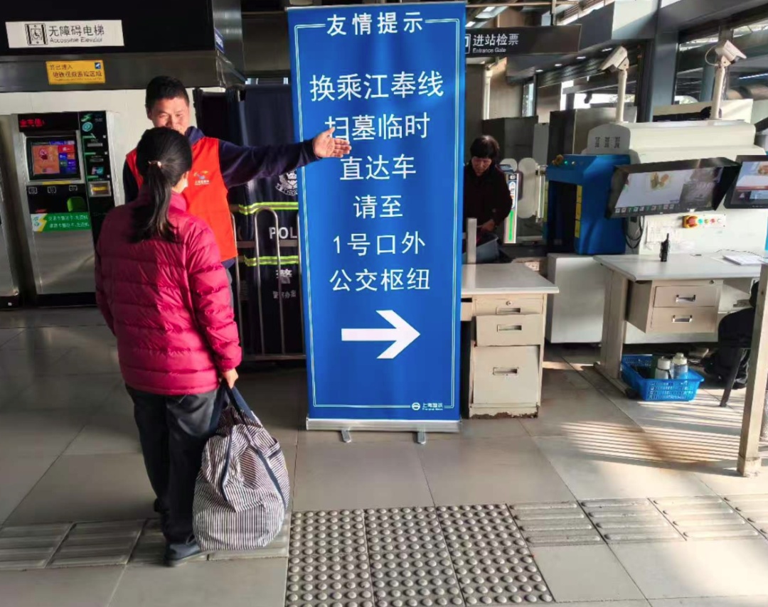 “坐地铁不用赶时间,从市区过来才40分钟,一路还有工作人员维持秩序,省心省力。”乘客龚女士从江苏路站换乘11号线直达上海赛车场站,原本担心的堵车、停车难问题,坐地铁全都避开了。随着交通出行的日益便捷,越来越多的市民倾向于选择“地铁+短驳”的方式前往墓园祭扫。