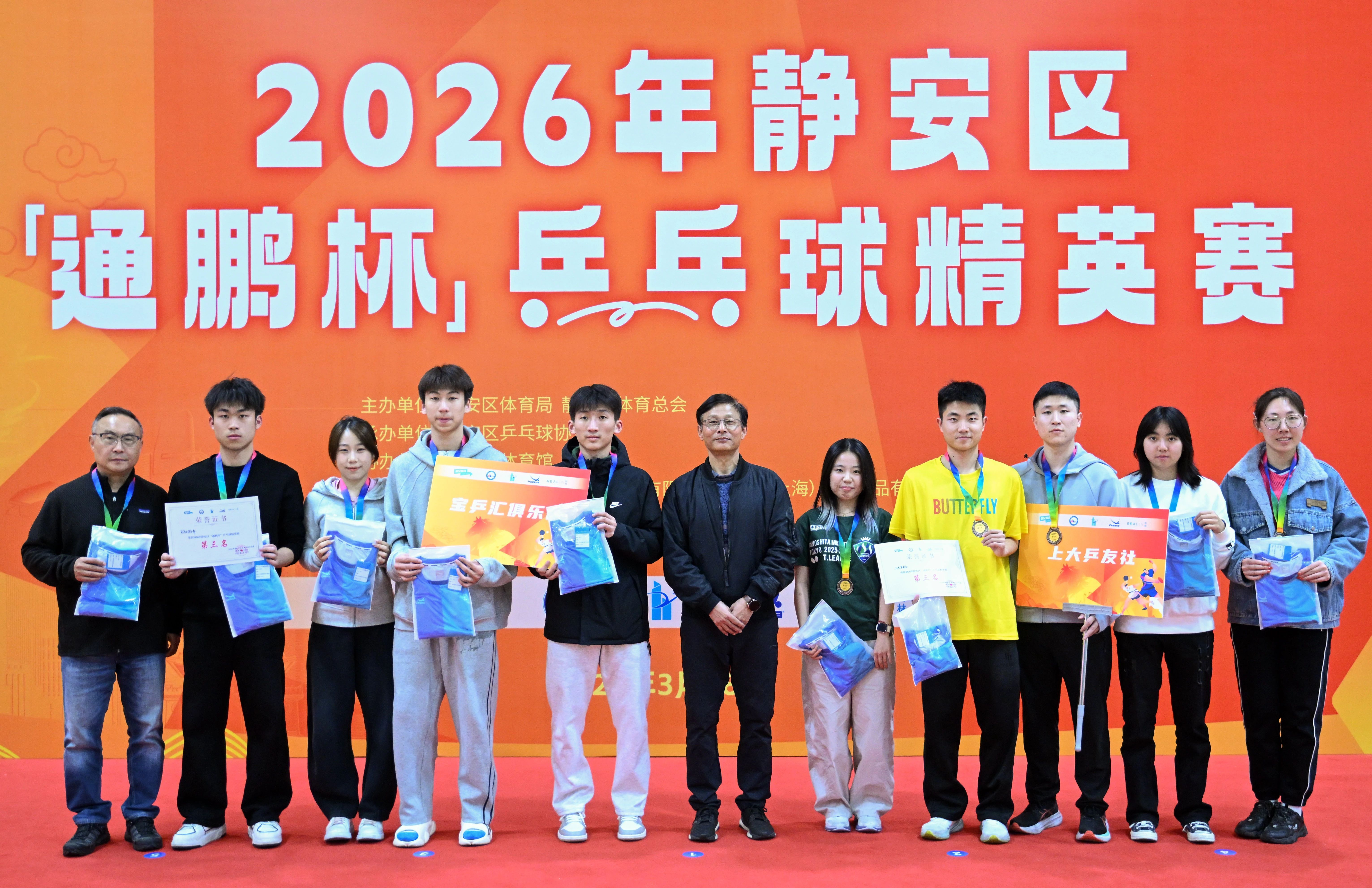 近日,由静安区体育局、静安区体育总会主办,静安区乒乓球协会承办的2026年静安区“通鹏杯”乒乓球精英赛,在静安区体育馆落下帷幕。来自全市的30支队伍同台竞技,以昂扬的斗志和不俗的球技,展现全民健身成果。