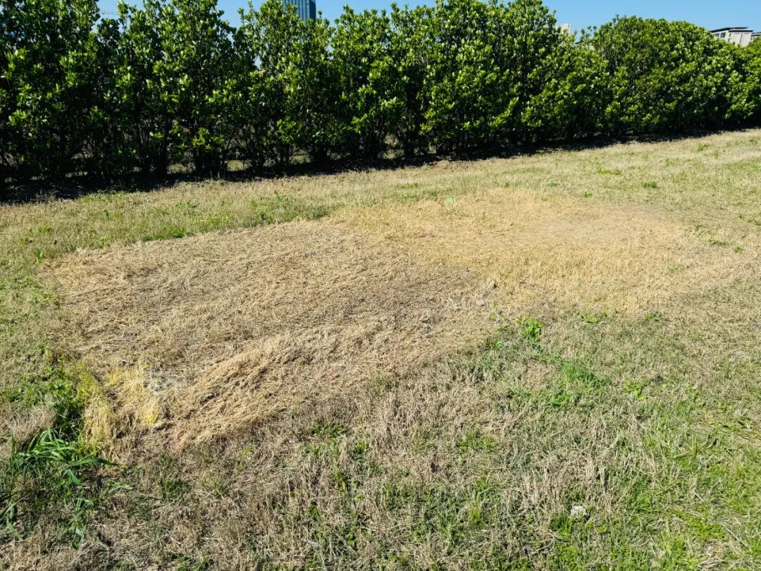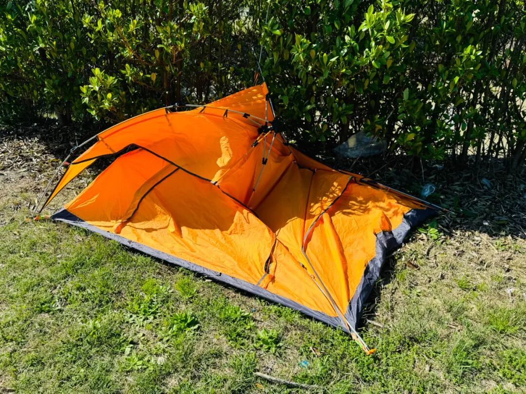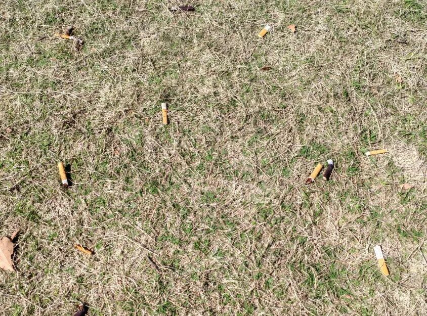 在这顶紫色帐篷周边,还散落着9顶其他帐篷,其中2顶已经损坏。更让人揪心的是环境卫生问题:周边草地上到处都是散落的垃圾,纸屑、奶茶杯、烟头、燃尽的炭灰随处可见,部分区域因长期露营踩踏,草皮已经坏死,与周边的绿地环境格格不入。