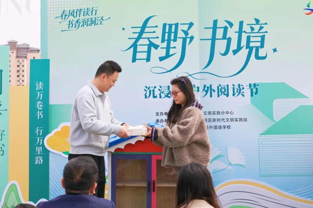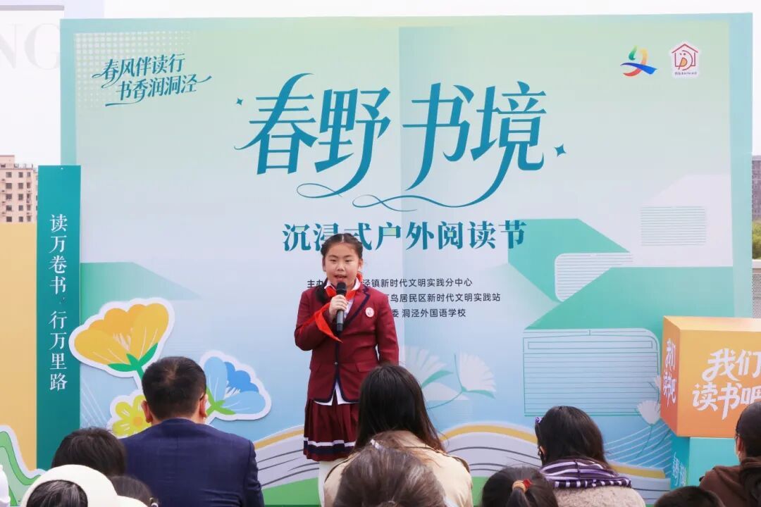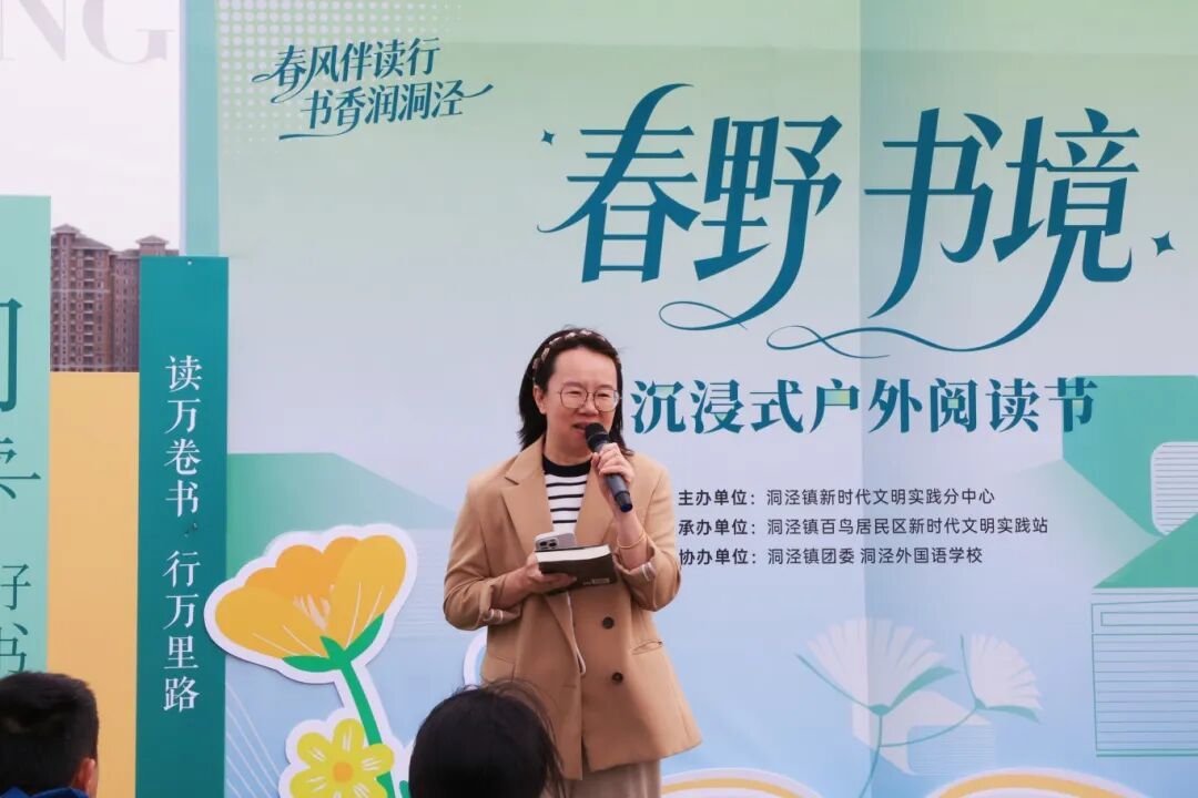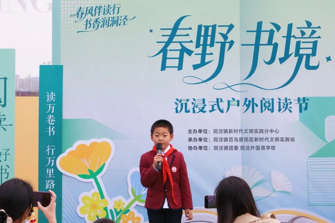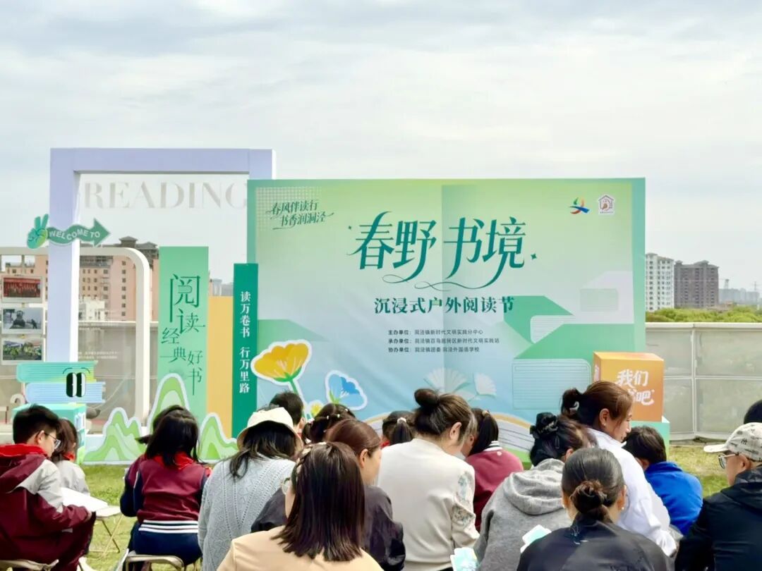 4月8日下午,“春野·书境”沉浸式户外阅读节启幕。该活动由镇新时代文明实践分中心主办,百鸟居民区新时代文明实践站承办,镇团委及洞泾外国语学校联合协办,吸引了众多居民、青少年与共建单位参与。整场活动以阅读为主线,融合分享交流、公益行动与互动体验,让书香走出室内空间,在自然环境中焕发新的活力。