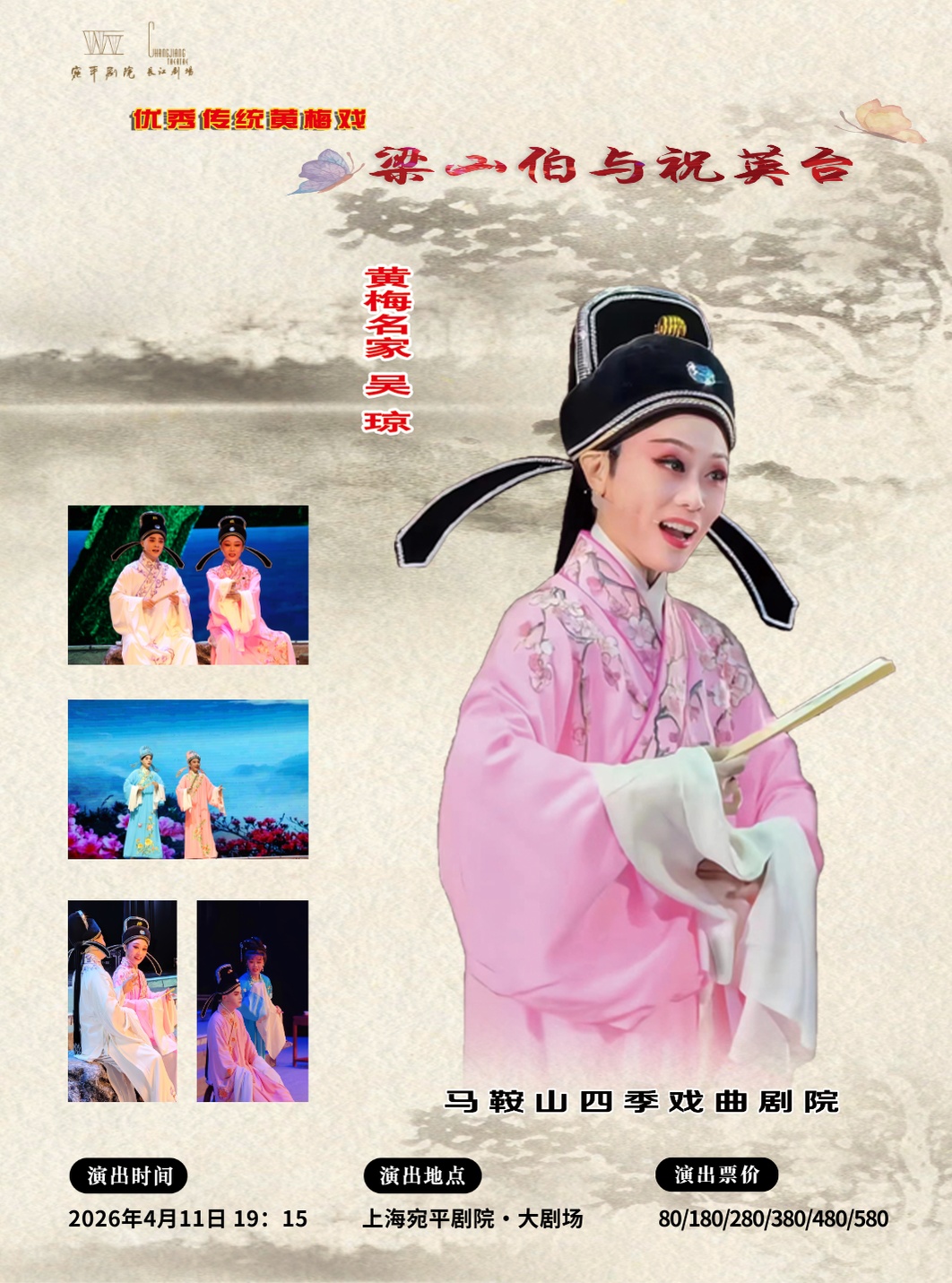 作为黄梅戏领域的代表人物,吴琼曾于2025年7月在上海宛平剧院演绎《天仙配》《女驸马》等经典剧目,婉转悠扬与慷慨激昂的唱腔让黄梅戏的魅力深入人心。此次二度登台,吴琼挑梁全本《梁山伯与祝英台》,为上海观众带来难得的欣赏机会。