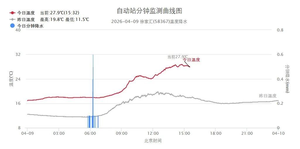 目前上游地区有对流云团正在快速发展移动,预计今天上半夜申城将出现对流降水,雨量可达中到大雨,大家注意防范。