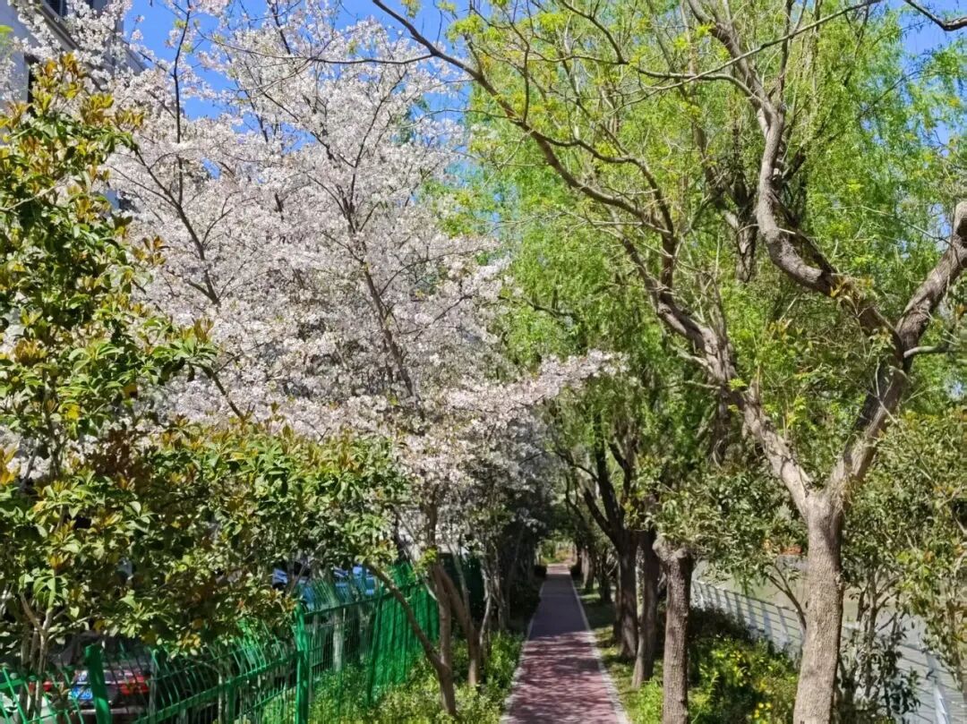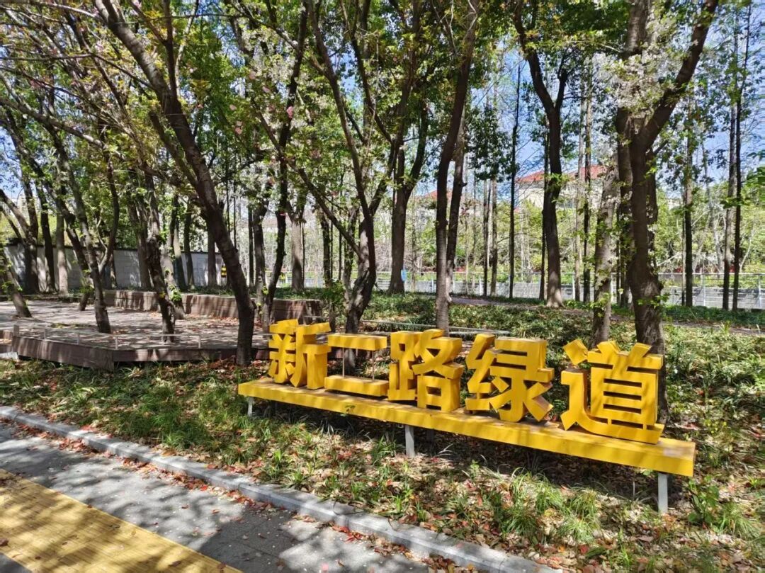 在公园的对面,还有一条新二路绿道,是平日健身休闲的好去处,在春日的阳光下,有着独特风景。