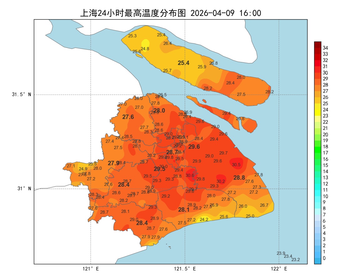 全市最高气温多在27~30℃之间