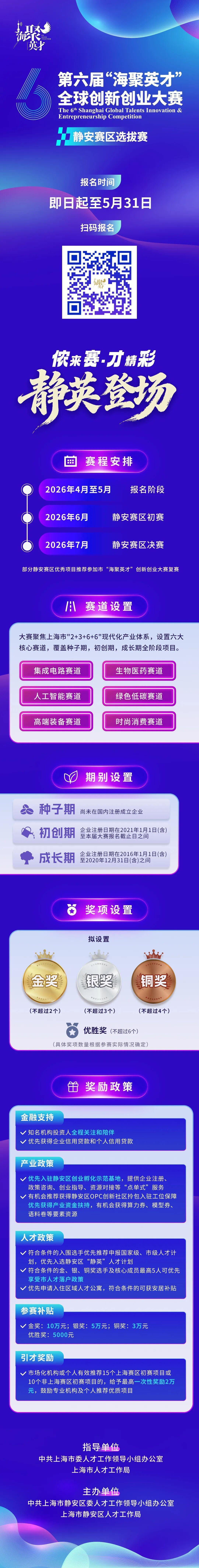 第六届“海聚英才”全球创新创业大赛静安赛区选拔赛已启动!