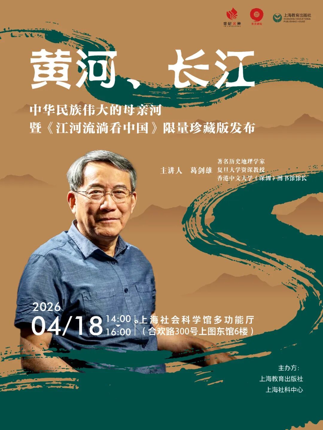 2025年夏天,《江河流淌看中国》在上海书展上隆重首发,受到读者们的热情追捧。今年的“4·23”读书日,恰逢《全民阅读促进条例》颁布后的第一个全民阅读活动周。在这个书香正浓的四月,葛剑雄教授将携《江河流淌看中国》限量珍藏版做客东方讲坛。大河奔流,文明不息,让我们一起期待葛剑雄教授讲述的母亲河故事,读懂流淌在中国血脉里的文明密码。