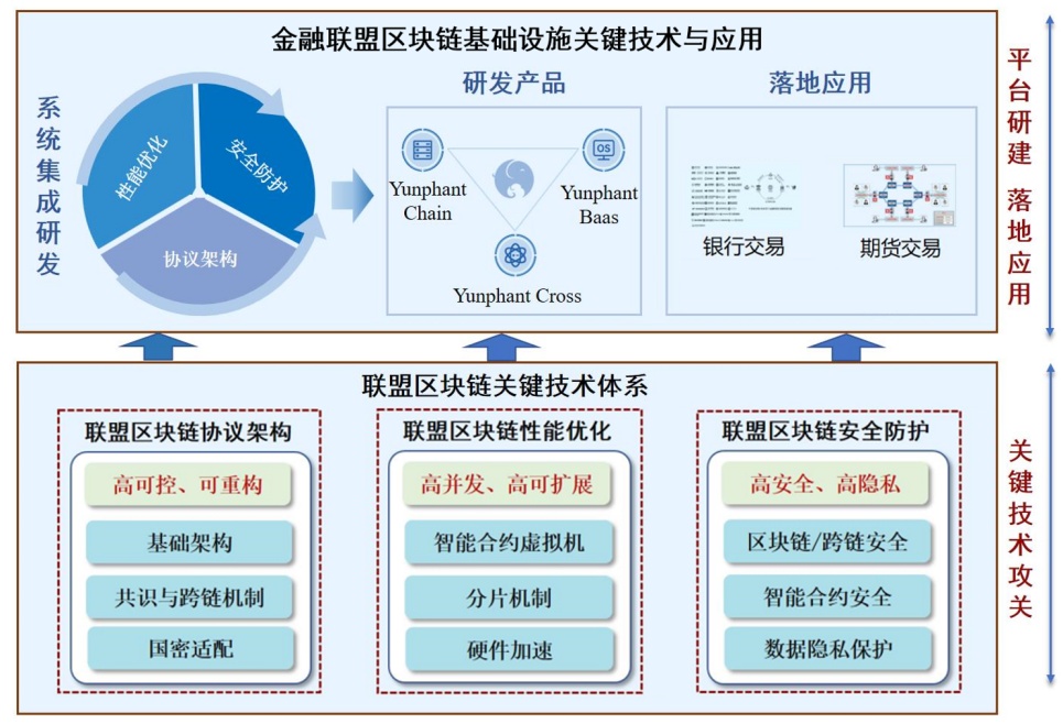 针对上述问题,“金融联盟区块链基础设施关键技术与应用”场景面向金融联盟区块链的应用需求,在联盟区块链协议架构、智能合约虚拟机与硬件加速、安全与隐私检测等区块链核心技术方面取得重要进展,形成可重构、高并发、强安全的金融联盟区块链基础设施平台和系列产品,并取得规模化应用。