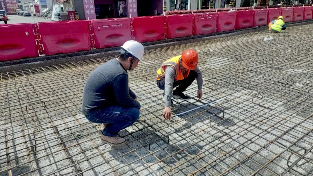 4月8日下午,记者在施工现场看到,施工区域已搭设临时护栏,清晰分隔作业区与通行车道。铣刨机正对老旧路面开展破除作业,一旁,工人们忙着进行钢筋绑扎。按设计尺寸切割后的钢筋被精准搭建在路面结构层内,为后续混凝土浇筑、路面施工筑牢结构基础。