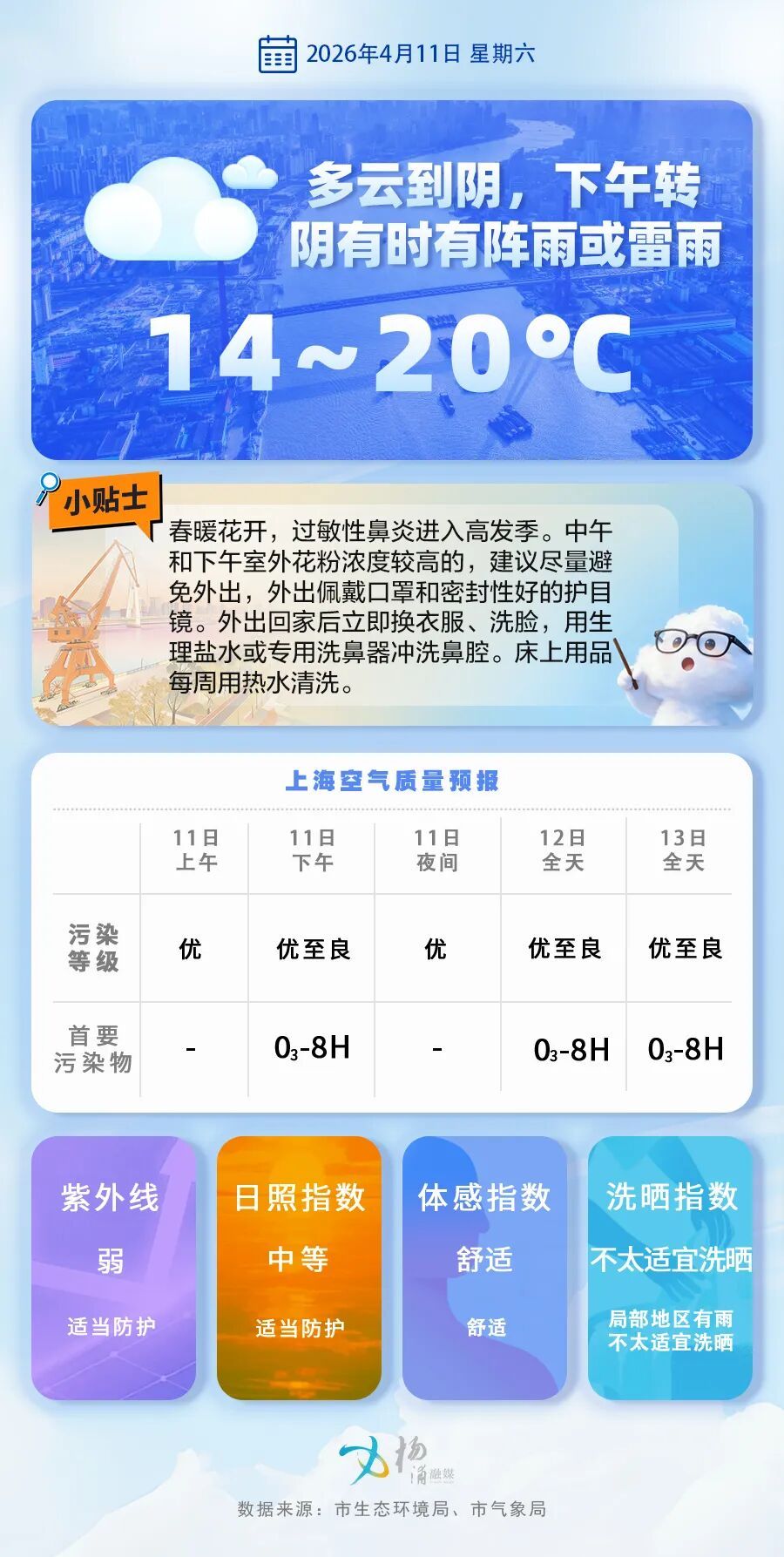 下午到傍晚有阵雨或雷雨,出行备好雨具