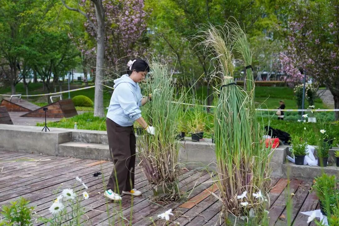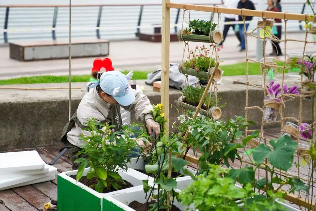据“花开徐汇·花园生活共创行动”项目负责人肖晓文介绍,该行动自3月启动,最初入围13组共创团队,经过两次指导工作坊后,最终确定了9组方案落地实施,另有一组共创者参与了“一米花园”的共创种植。这些落地作品充分运用了可持续回收材料与手工创作,主题涵盖宠物友好、儿童友好、代际交流、AI科技与自然融合、可食花园等多个维度。部分团队不仅完成了花园的实体搭建,还策划了花卉节期间可开展的互动活动内容,增强了作品的参与性和体验感。