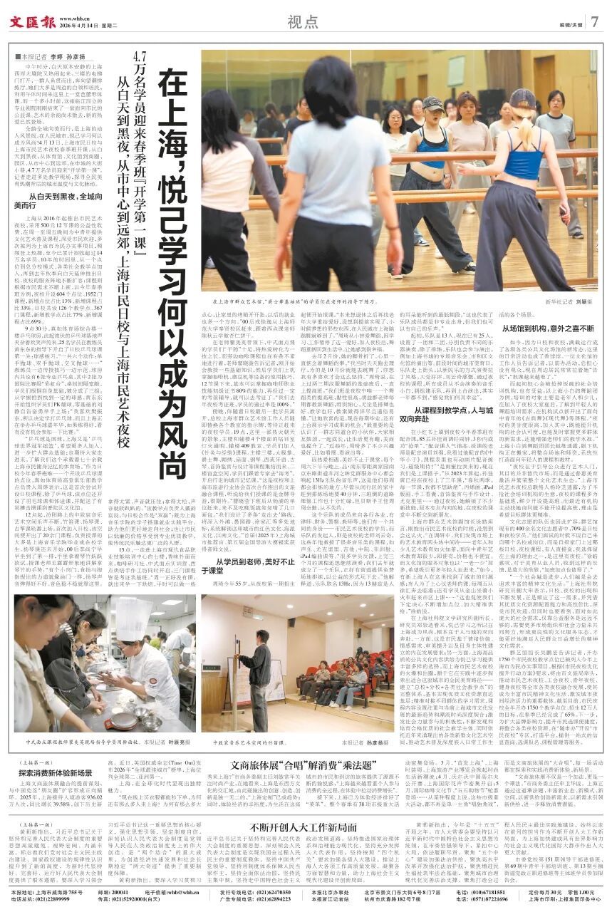 在上海社科院文学研究所副所长、研究员郑崇选看来,悦己学习之所以在上海成为风尚,根本在于人与城的双向奔赴。一方面,这是市民基于情绪价值、情感需求、审美提升以及自身主体性建立的内在发展要求;另一方面,上海高品质的公共文化内容供给为悦己学习提供丰富多样的选择。而上海市民艺术夜校的火爆和出圈,源于它在实践中逐步探索出适合这座城市的全民美育路径——建立“总校+分校+各类社会教学点”的完整体系,基本实现优质文化资源直达基层;精准对接不同群体的学习需求,课程内容设置注重与当前上海城市文化发展的最新趋势和潮流时尚深度契合;激发社会力量参与的积极性,不断发现和培育合格优质的社会教学主体,同时依托近年来涌现出的各类新型文化艺术空间,推动艺术普及深度嵌入日常工作生活的各个场景。
