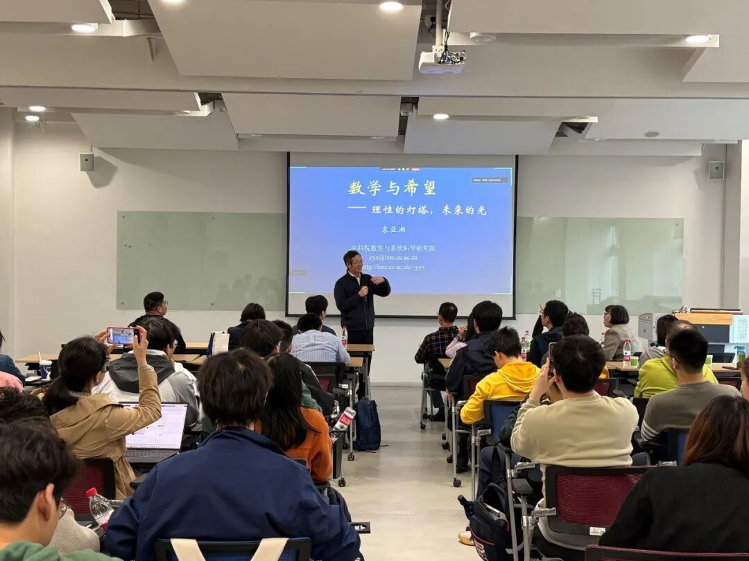 报告中,袁亚湘院士紧扣2026年国际数学节“数学与希望”的主题,他指出,数学不仅是科技发展的基石,更是人类理性信念的源泉与前行方向的指引。袁院士从联合国教科文组织设立该主题的背景出发,结合2025年中国发行的《数学之美》邮票所体现的社会对数学的广泛认同,生动阐述了“希望源于理性,数学赋能未来”的核心观点——数学正是人类将不确定性转化为可实现的希望路径的关键工具。