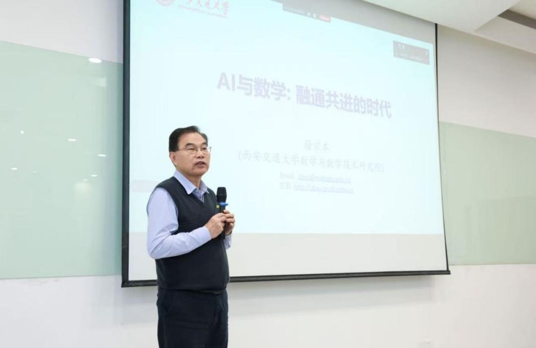 2025年10月30日,“数学大师讲坛”第十六讲举行。此次以线上线下同步的形式顺利开讲,邀请的主讲嘉宾是中国科学院院士、西安交通大学徐宗本教授。徐宗本院士为在场师生作了题为《AI与数学:融通共进》的科普报告。