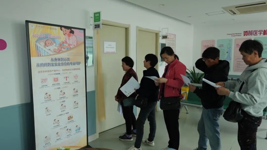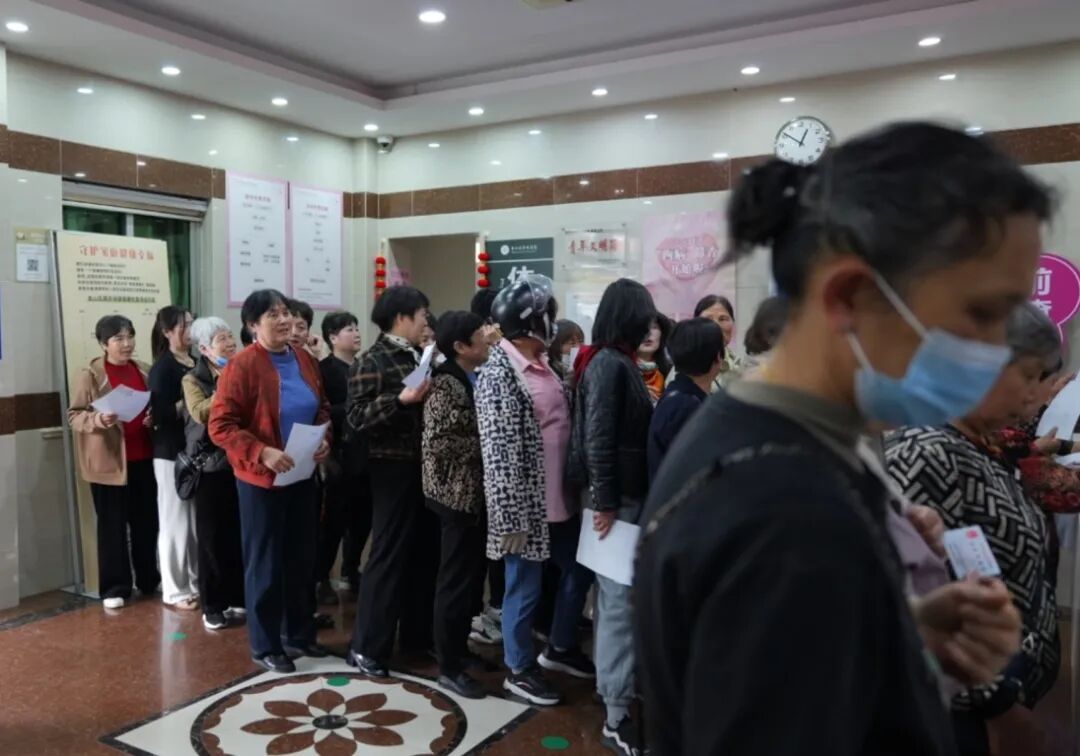 走进亭林医院体检中心,登记窗口前排起了长长的队伍,不少妇女陆续前来,在志愿者的引导下,有序完成登记信息、打印单据、分流检查、取阅报告等各项程序。
