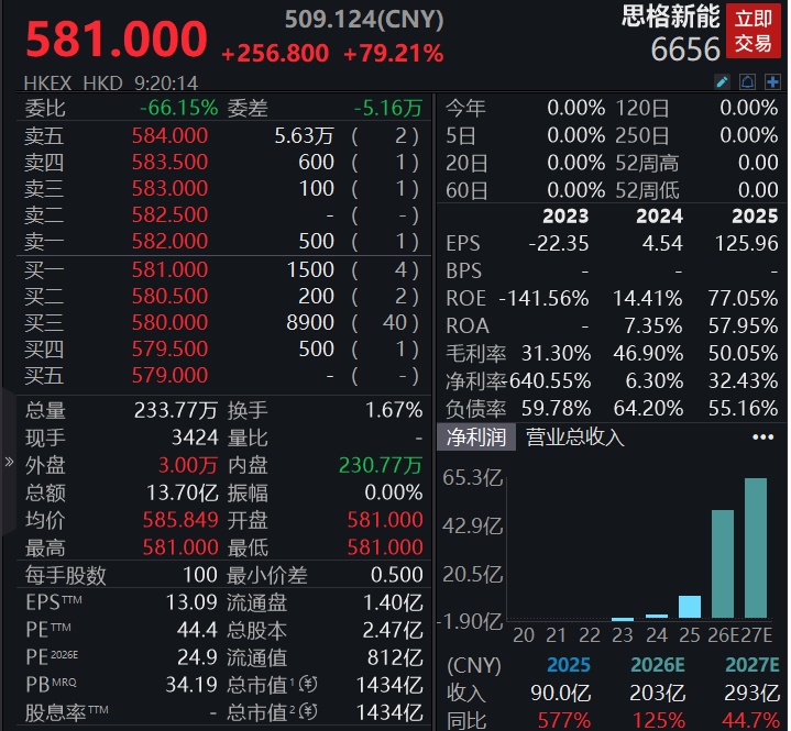 财务数据显示,公司2023-2025年营收从5830万元增至90.01亿元,两年增幅超150倍;2025年净利润达29.19亿元,净利率32.4%。