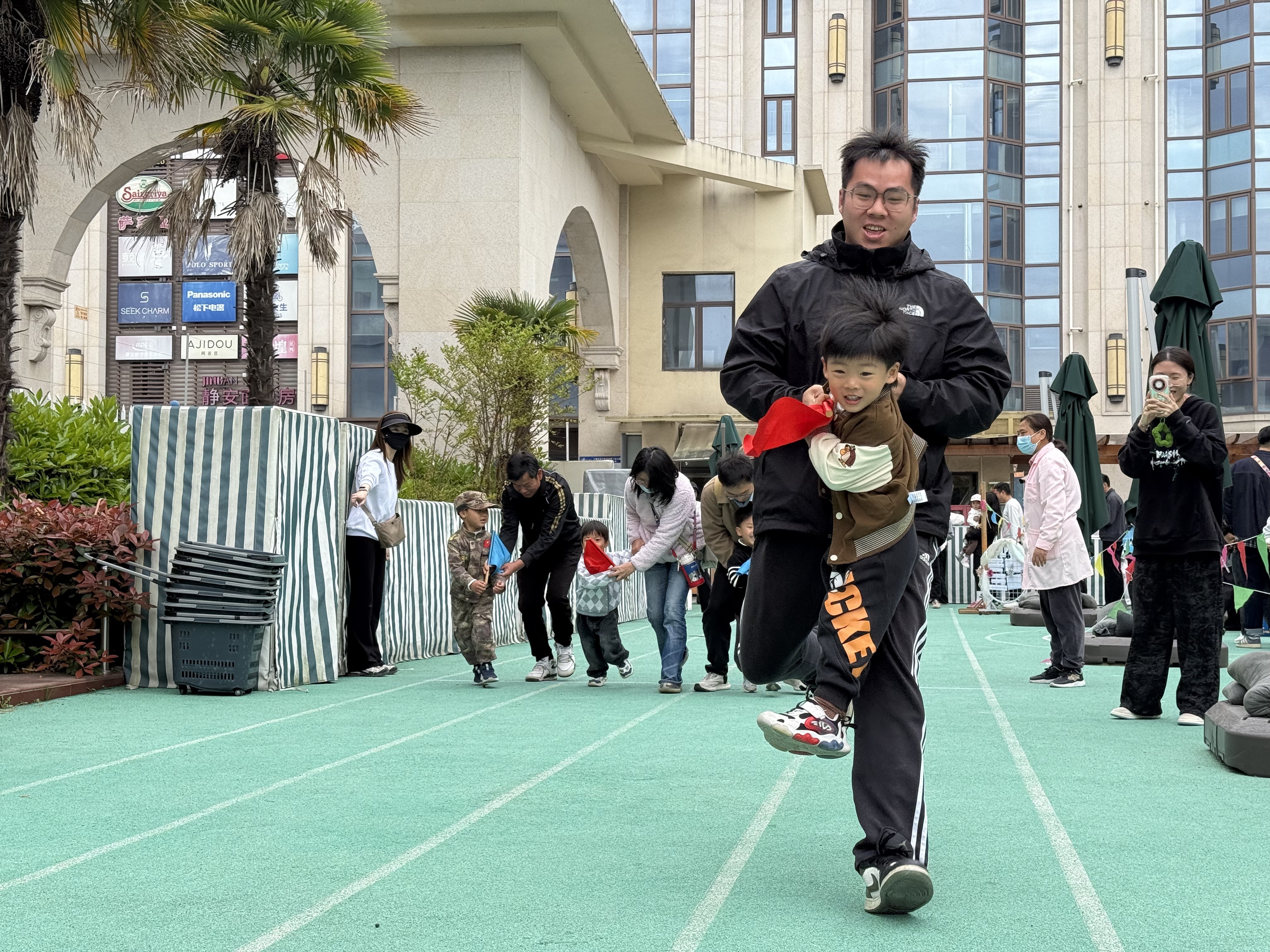 家长牵手孩子奋力比拼