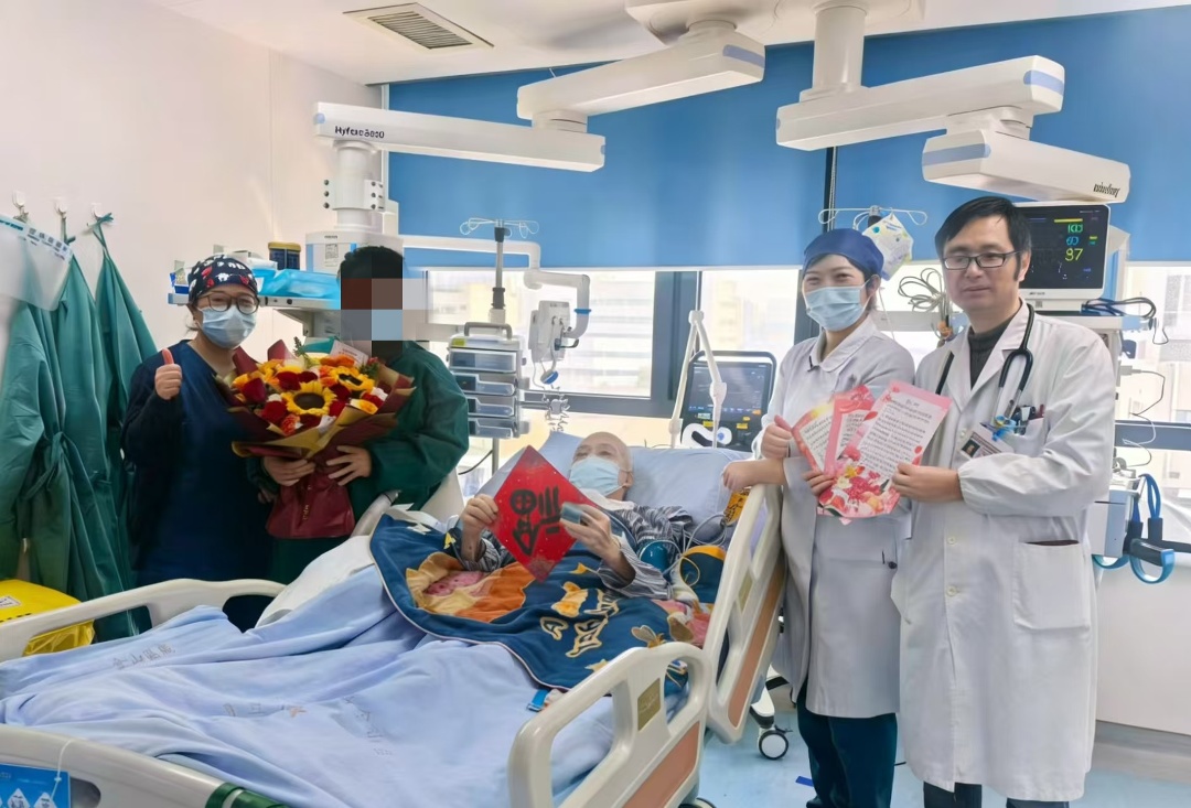 ICU救治之路布满荆棘。王阿伯首次拔管后,因咳痰无力、二氧化碳潴留,病情再度恶化。医疗团队当机立断,再次实施气管插管及气管切开术,为生命赢得关键时机。病程中患者出现难治性休克、多脏器功能衰竭,带组医师顾彩锋副主任医师始终坚守床旁,紧盯每一项指标变化,以精准判断保驾护航。陈俊峰、汪兰曌组成的医疗小组每日动态评估,精细调整用药与脱机方案,每一步决策都彰显专业与担当。