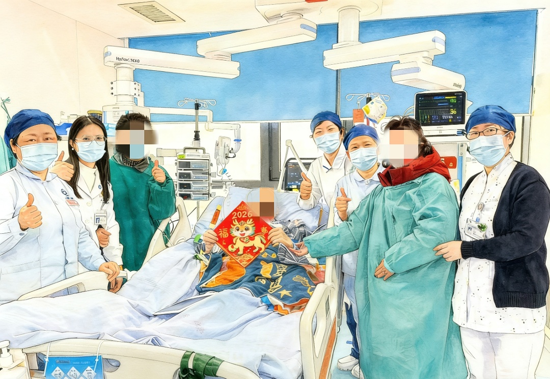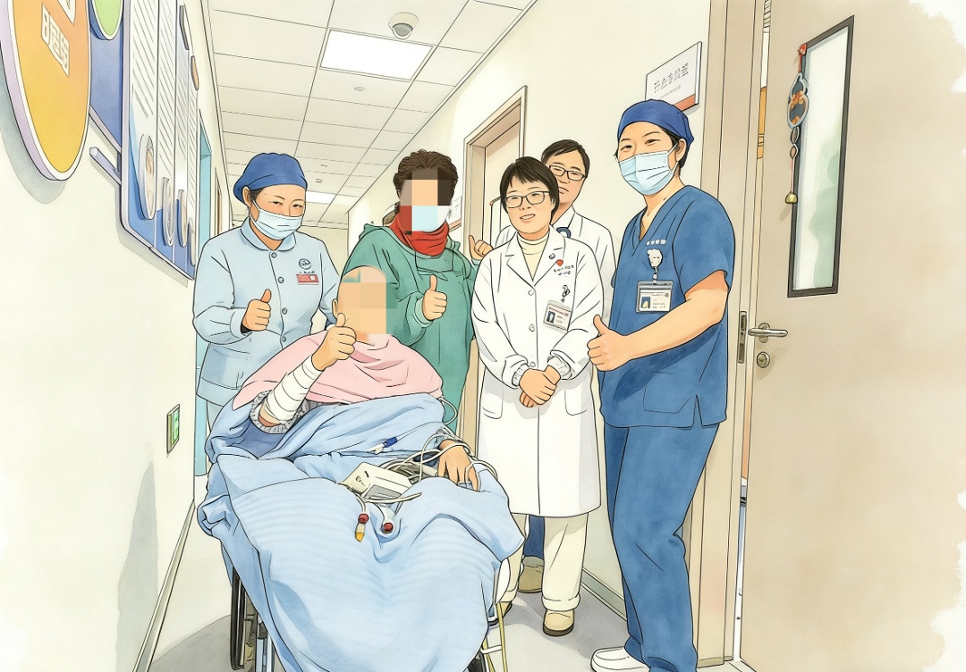 这是一场跨越寒冬的生命奇迹。在金山医院的服务理念里,医学从来不是医者独自前行的征途,而是“五指相扣、同心聚力”的坚守:医生是担当的拇指,护士是机敏的食指,家属是包容的无名指,护理员是勤恳的小指,病人是被包裹着的中指。五指各司其职,却血脉相连、缺一不可,唯有紧紧相依握紧成拳,才能凝聚对抗病痛的无穷力量。