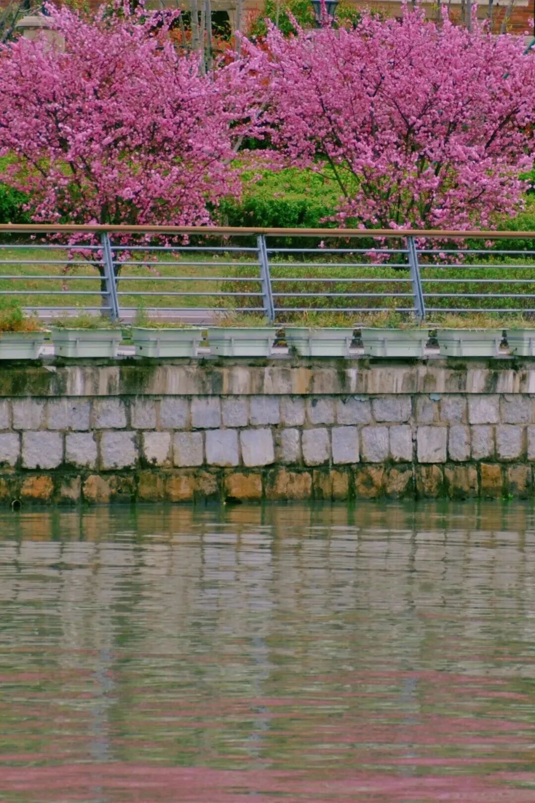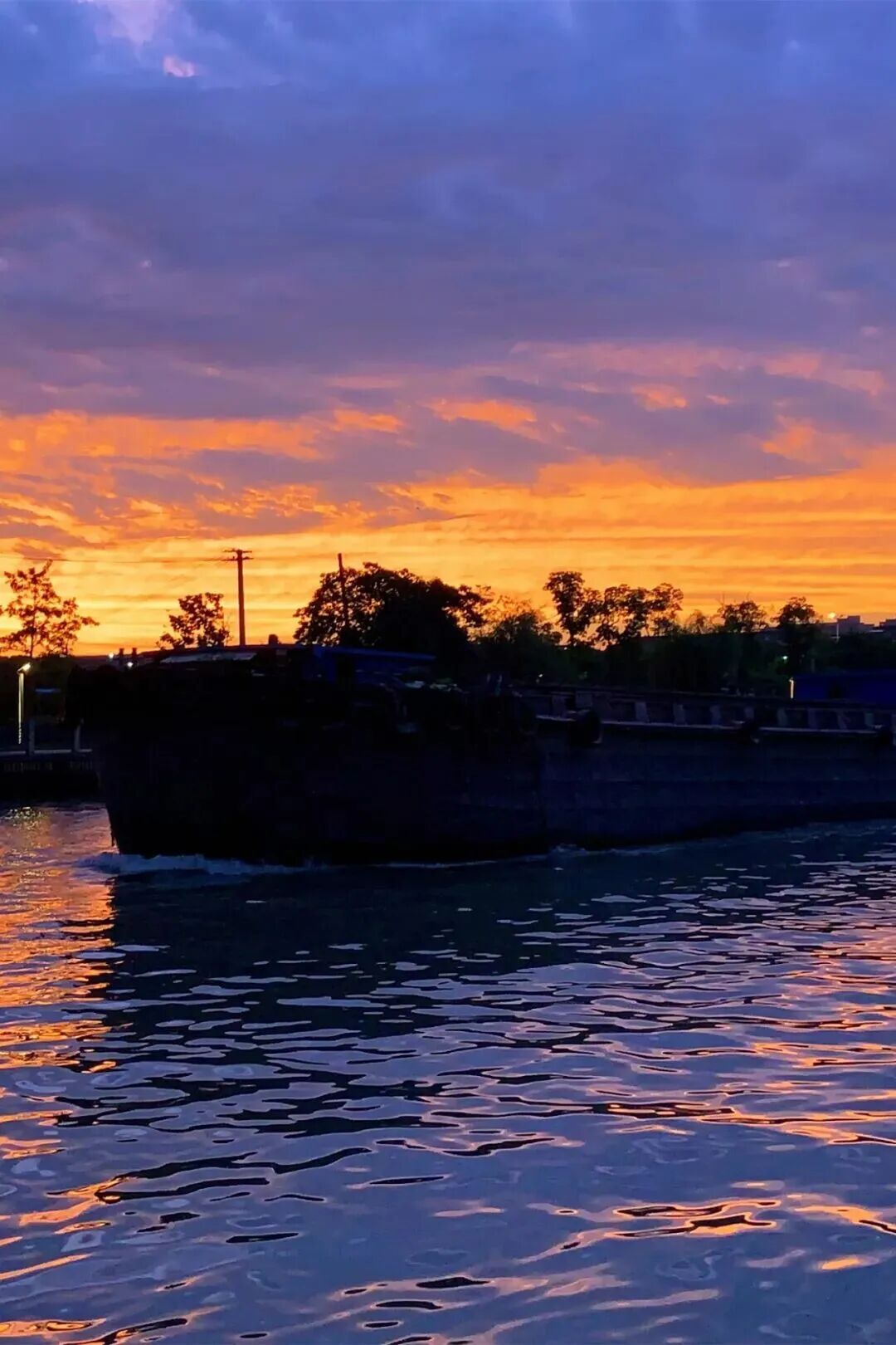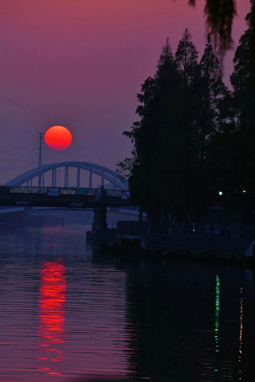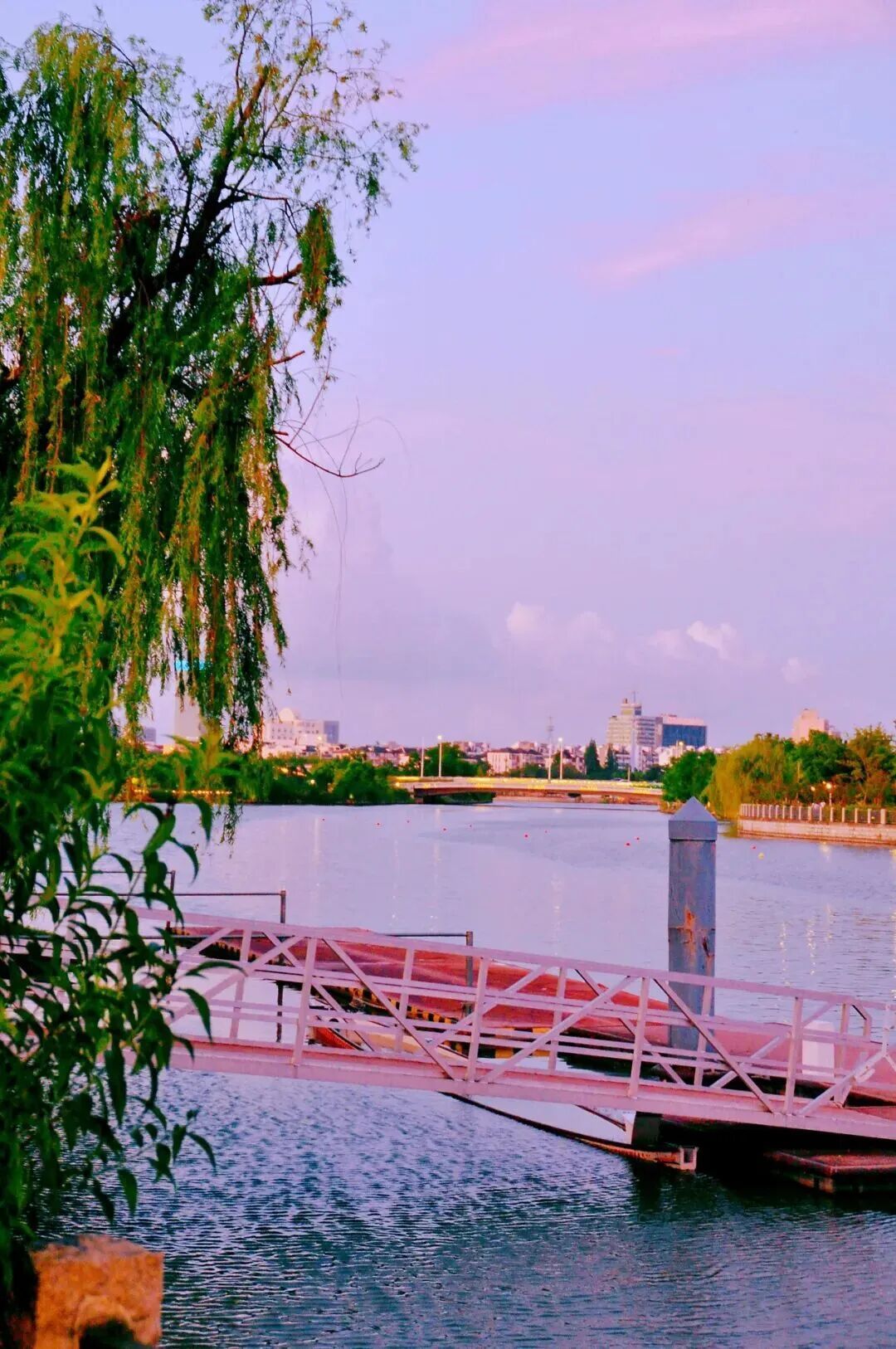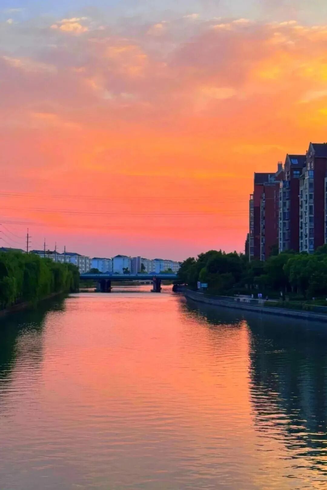 温柔的橙粉色晚霞在上达河里“荡漾”