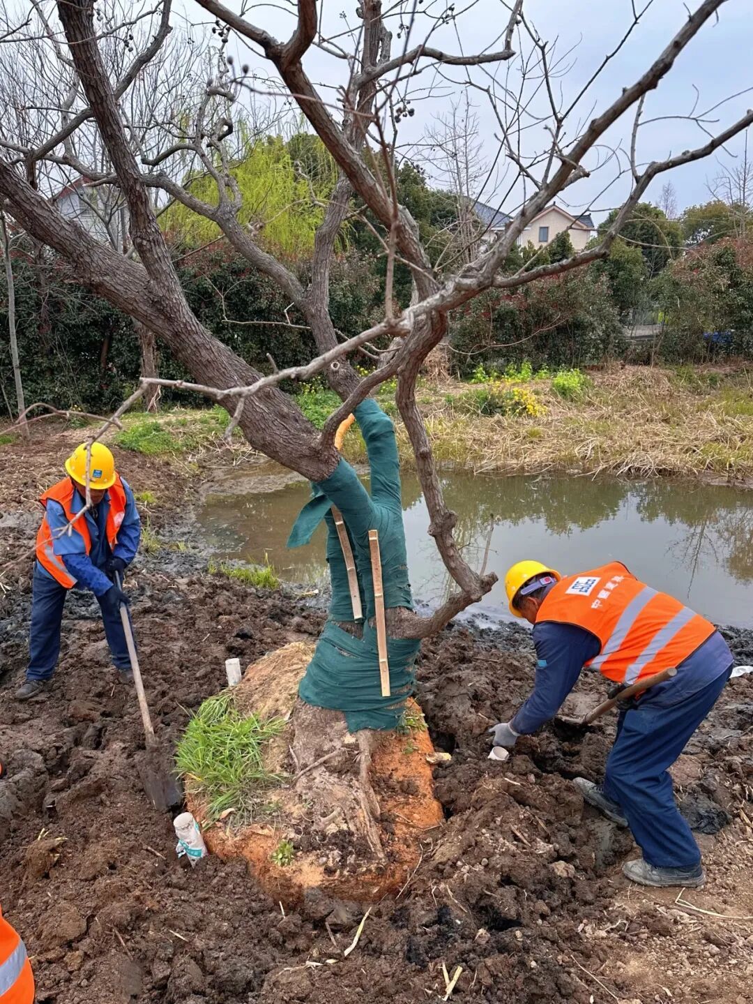 村民们也成了施工队的“乡土向导”,四叉港三棵栾树是杨师傅十多年栽种的故事,便是从村民口中得知。施工队特意保留原生树木,将其与新植绿植一体化设计,守住乡村原有肌理,让沪派江南本真模样得以留存。