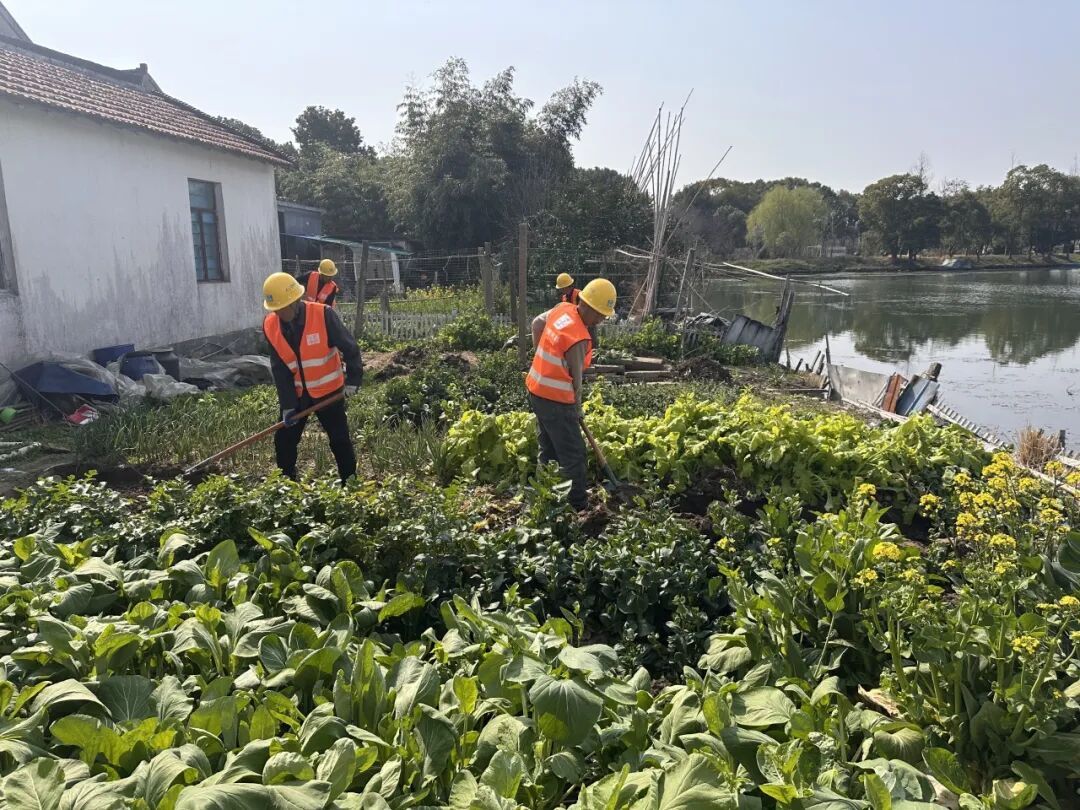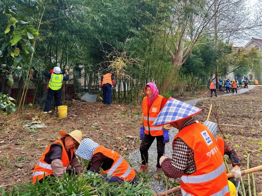 西岑项目的施工,从来不是单方建设,而是与村民的互相成就。起初项目仅请了五六位村民帮忙种菜,看着施工队真心待村、用心做事,越来越多村民主动加入,最终四十多位村民在家门口参与家乡建设,种菜、清垃圾、种绿植,干劲十足。