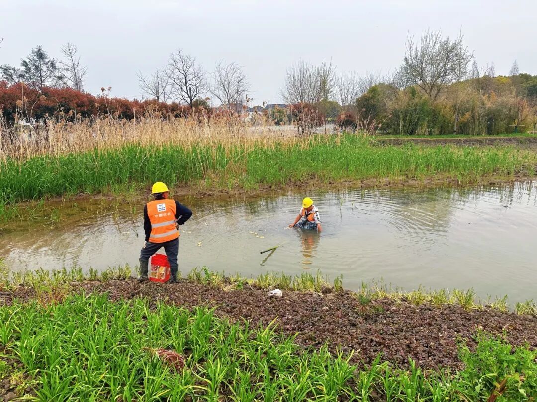 工地上还有一群“万能施工人”,桥头地头栽树、湿地塘里种藕、田埂坡上种地被,样样精通、处处都有他们的身影。有人曾疑惑,他们为何特意从荒草地里挖取泽漆、野菖蒲移栽到湿地?后来才明白,这正是他们践行NbS在地化理念的生动实践——把荒草地中长势过密的本土植物,细心移栽到需要生态修复的区域,用本地草木守护本土水土,不搞“水土不服”的外来绿化,只做顺应自然、贴近乡土的真实修复。