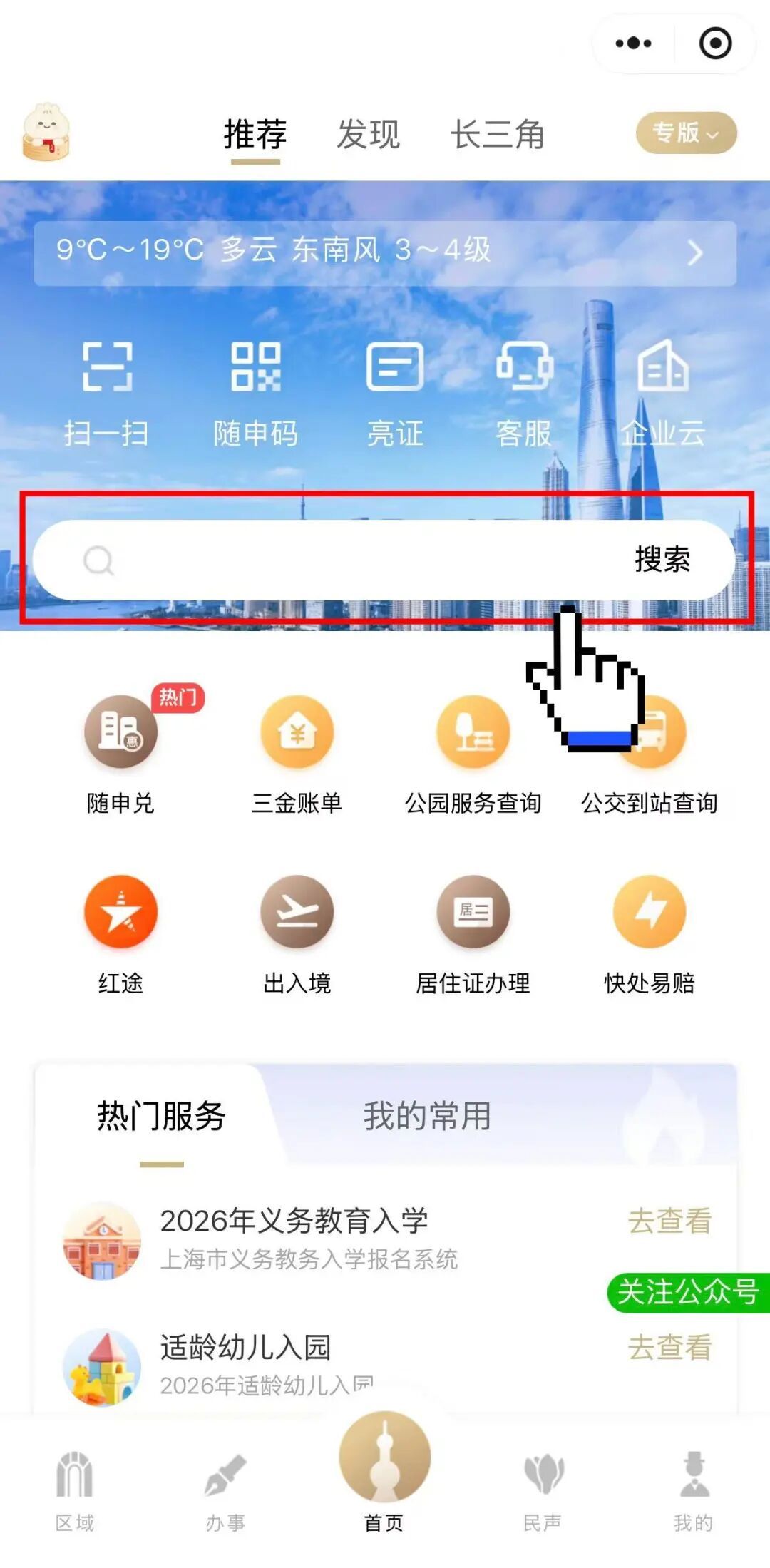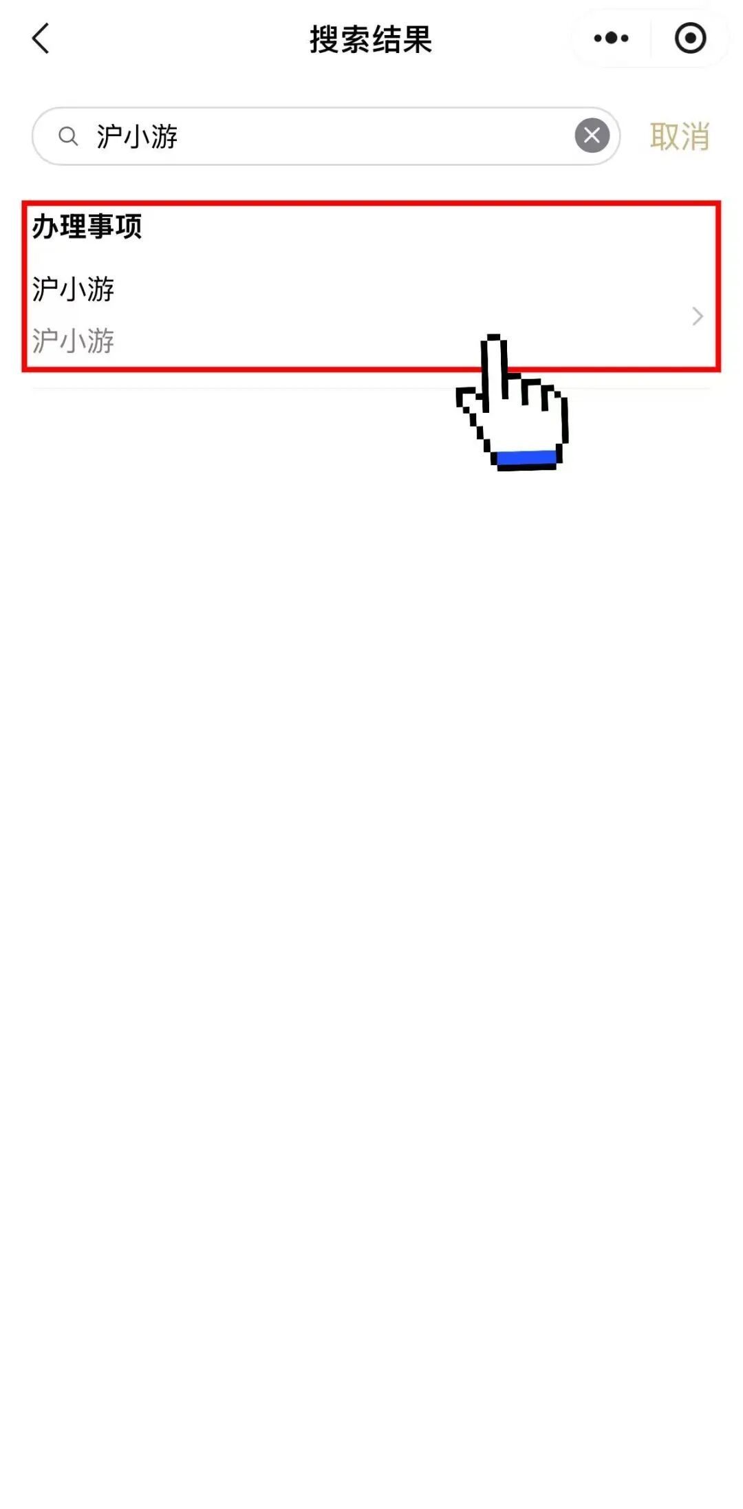 打开“随申办市民云”(微信小程序/支付宝小程序),首页搜索栏输入“沪小游”并点击进入。