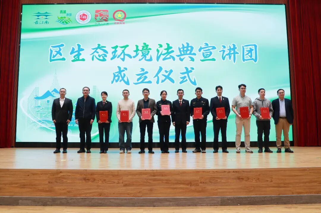 为了让法律的专业术语变成群众听得懂的“家常话”,打通法典宣传的“最后一公里”,活动现场还正式成立了“青浦区生态环境法典宣讲团”。该宣讲团汇聚了市区两级生态环境局执法骨干、检察干警以及青年志愿者等多方力量。