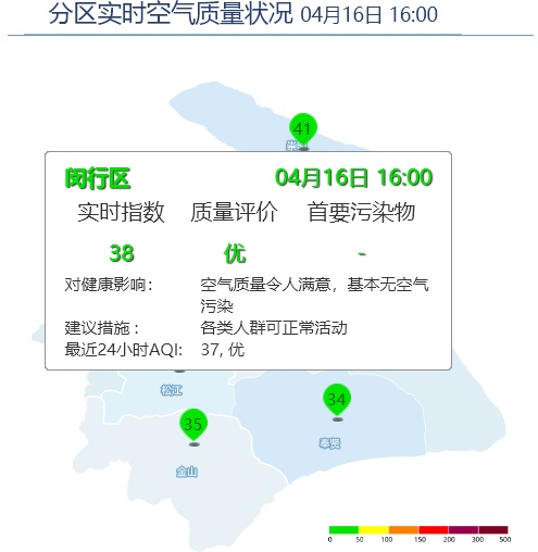 闵行区AQI为38,优;