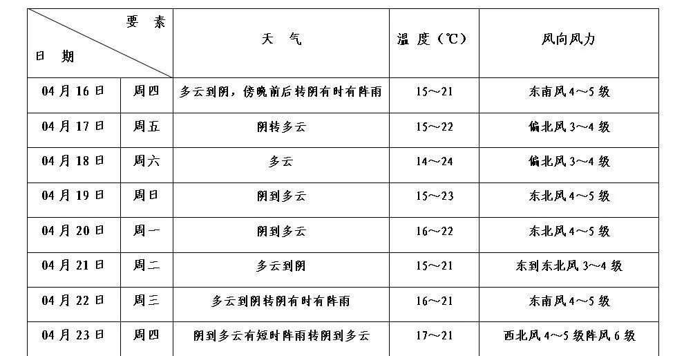 本区未来十天天气预报