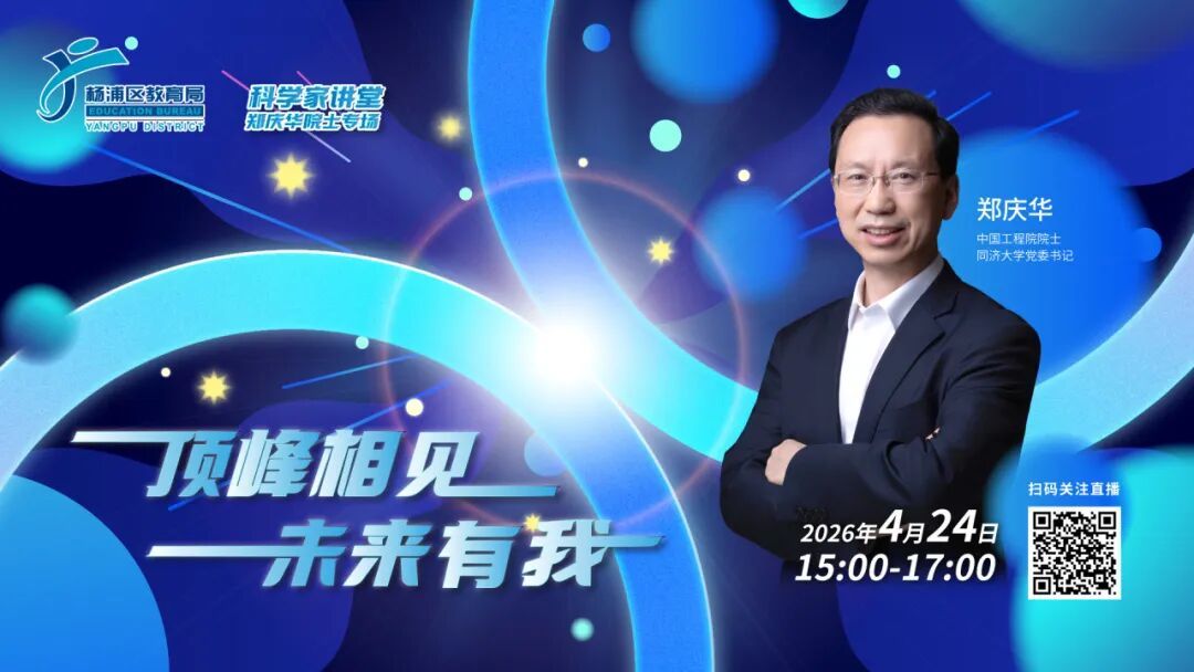 4月24日,“顶峰相见·未来有我”科学家讲堂重磅开启,首场嘉宾——中国工程院院士、同济大学党委书记、人工智能领域顶尖专家郑庆华院士,将走进杨浦校园,以“大朋友”的身份,与同学们智慧对话、深度分享,面对面畅聊“人工智能与未来社会”。