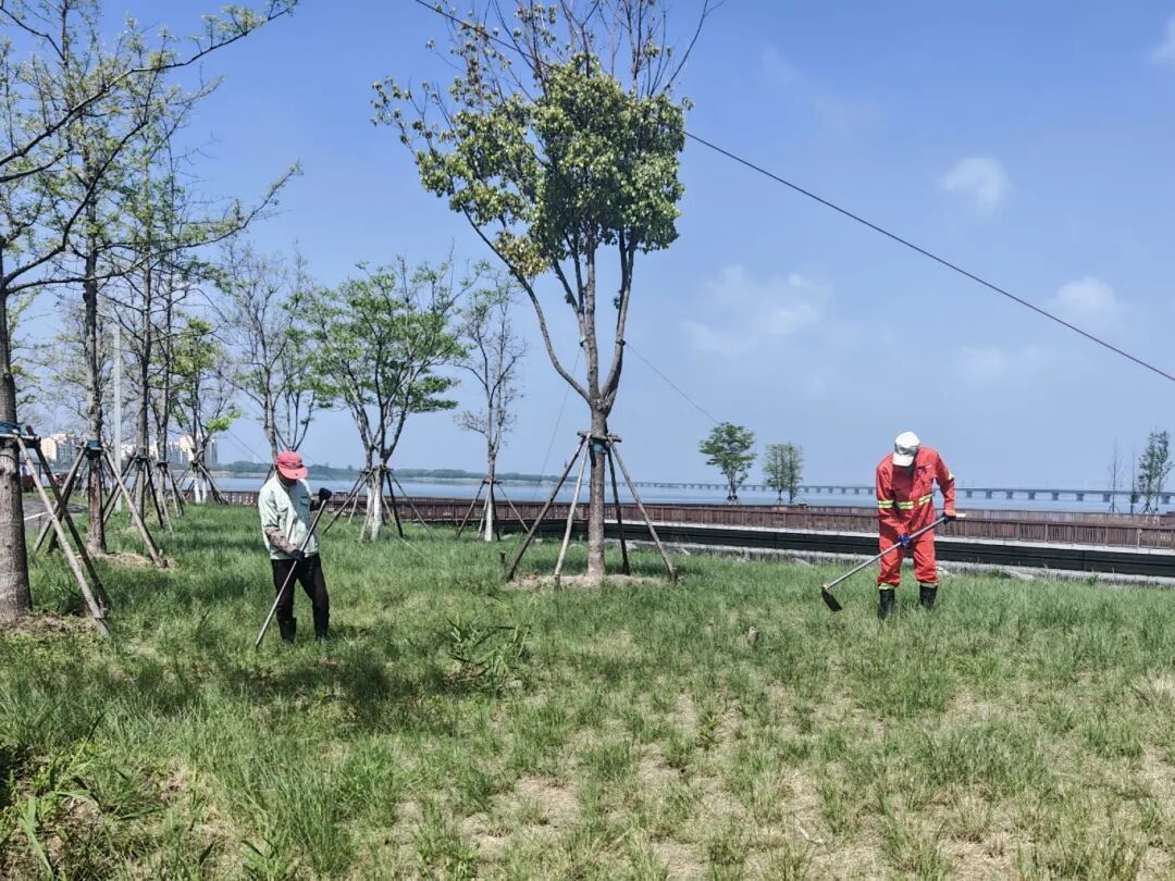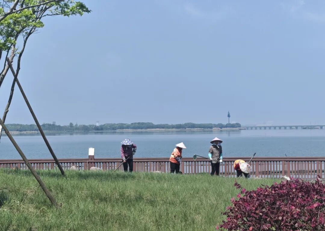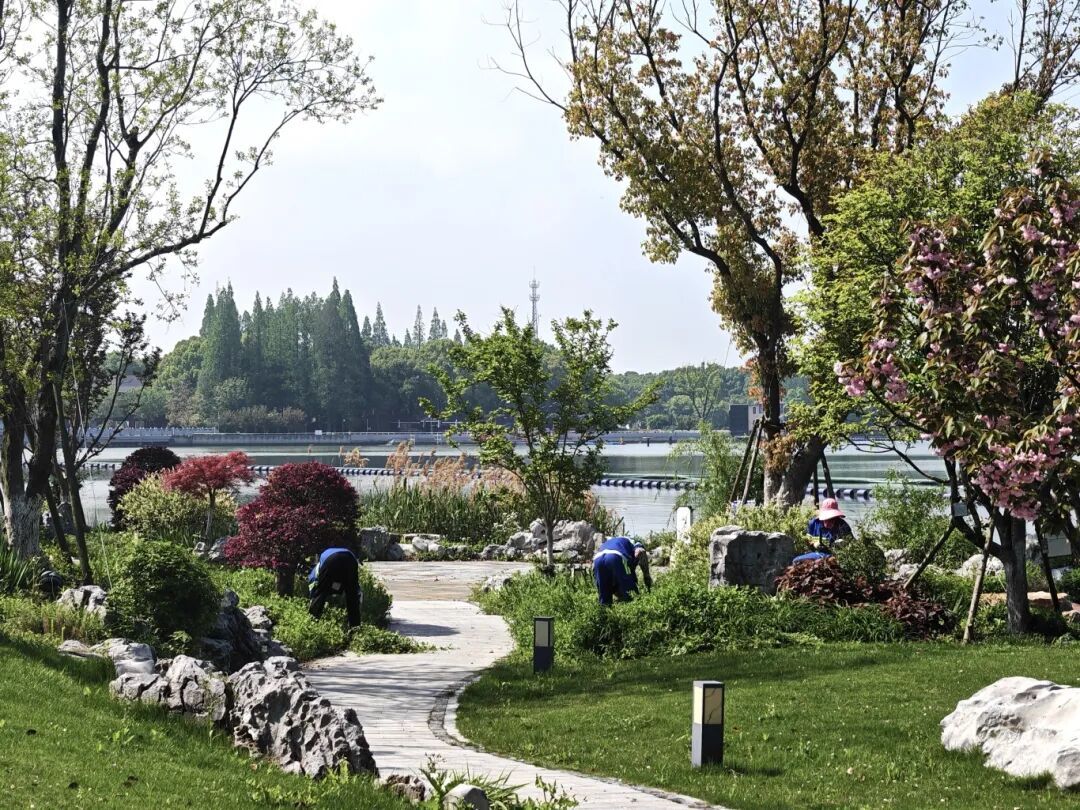此次环境保障,严格遵循“三统筹、四提升”全域环境整治提升专项行动要求,聚焦“整洁、有序、温馨、安全、美观”目标,将保障范围全面覆盖游泳、骑行、跑步每一个赛段的所有重点区域:元荡湖作为游泳赛段,工作人员重点清理水面垃圾、养护周边绿植,既为选手打造洁净安全的竞赛水域,也展现青浦水清岸绿的生态风貌;蜿蜒的环湖绿道和公路赛道,工作人员细致检查路面平整度、清理各类杂物,精心养护两侧绿化、规范沿线市容秩序,全力为选手营造畅通、整洁的竞赛环境;起终点、转换区等赛事核心区域,更是开展“地毯式”排查,从环境卫生、公共设施安全到周边秩序管理,每一个细节都严格把控,筑牢赛事环境保障防线。