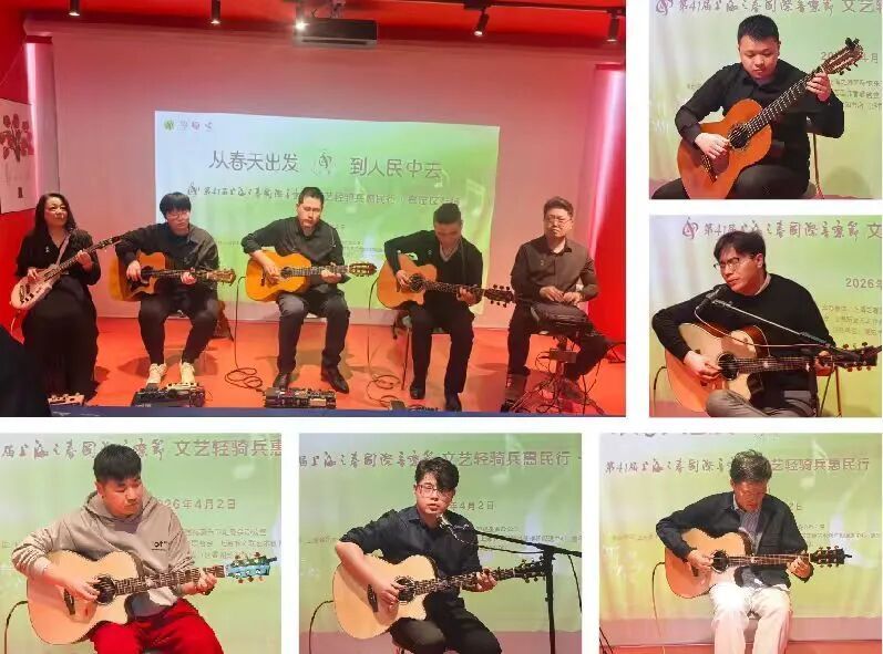 非常荣幸能够参与2026年4月2日第41届“上海之春”文艺轻骑兵惠民行演出。作为“文艺两新”的一员,这次走进基层,我的所见所闻,让我深受感动与鼓舞。此次演出的核心是“文艺惠民”。为此,上海音协吉他专委会精心准备了一套贴近大众、丰富多元的节目,在嘉定区混知书店这个充满书香的场地上演。演出现场的观众热情超乎想象,演出过程中不时响起全场大合唱,台上倾情演绎、台下热情呼应,氛围热烈又温馨。我印象尤为深刻,一位小观众随着音乐情不自禁翩翩起舞,这样的场景让人倍感温暖。观众们的掌声与笑脸,让我深刻体会到了文艺扎根人民的温度与力量。作为新时代文艺工作者,我们既要坚守艺术初心,打磨专业技艺,更要心系大众、服务人民。“从春天出发,到人民中去”,这次活动让我对文艺轻骑兵惠民行的演出宗旨有了最深刻的体会。未来,我将继续以“文艺轻骑兵”为纽带,展现“文艺两新”的担当与风采,用动人的旋律回馈社会,为城市文化繁荣贡献自己的一份力量!