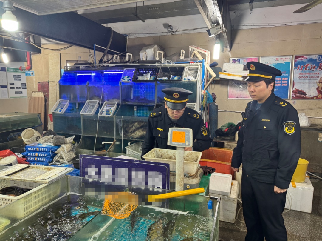 执法人员精准出击,现场查获正在使用的作弊秤。