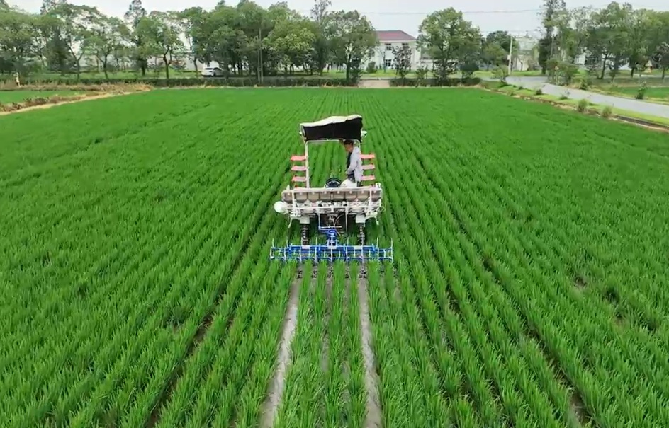 这台设备巧妙复用无人插秧机的作业轨迹,既能完成水稻插秧,更换组件后又能开展物理除草,精准清除水稻行间距杂草,关键还不会损伤秧苗。“以前除草主要靠人工和化学药剂,人工成本高、天气炎热劳作辛苦,而化学除草又容易残留,影响土壤和稻米品质。”孙佳赟介绍说,物理除草设备的应用,既减少了农药投入,还能提升稻米绿色品质。