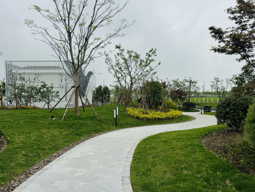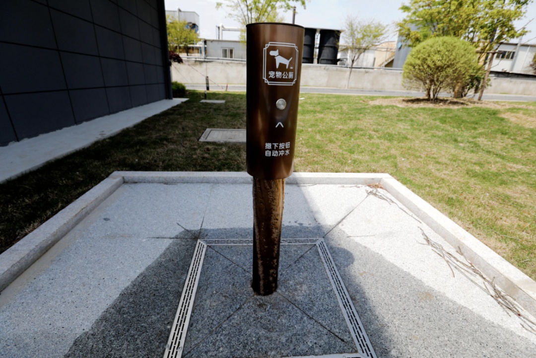 除了满眼绿意,绿地内的配套设施同样贴心实用。开关站可为园区稳定供电提供保障;预计于5月开放的公共厕所采用简约现代的设计风格,与周边自然景观和谐相融;宠物公厕“一键冲水”,极大地提升了市民的遛宠体验。