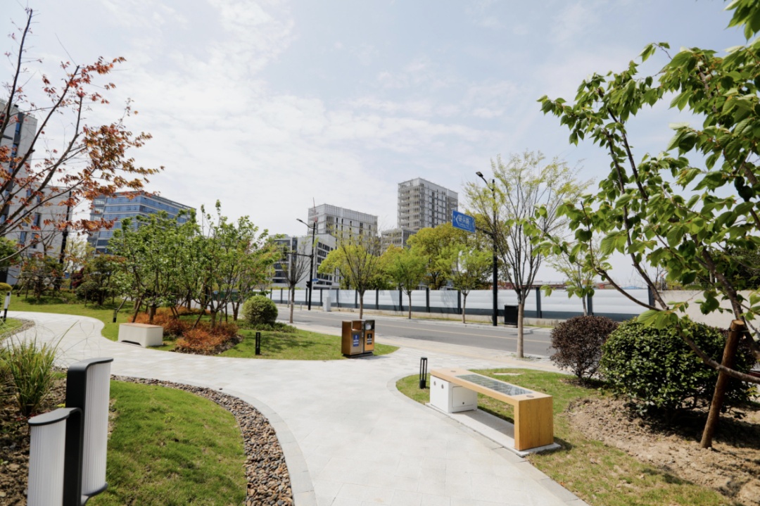 近日,山阳镇上海湾区科创城周边,一片占地约4000平方米的公共绿地正式对外开放。