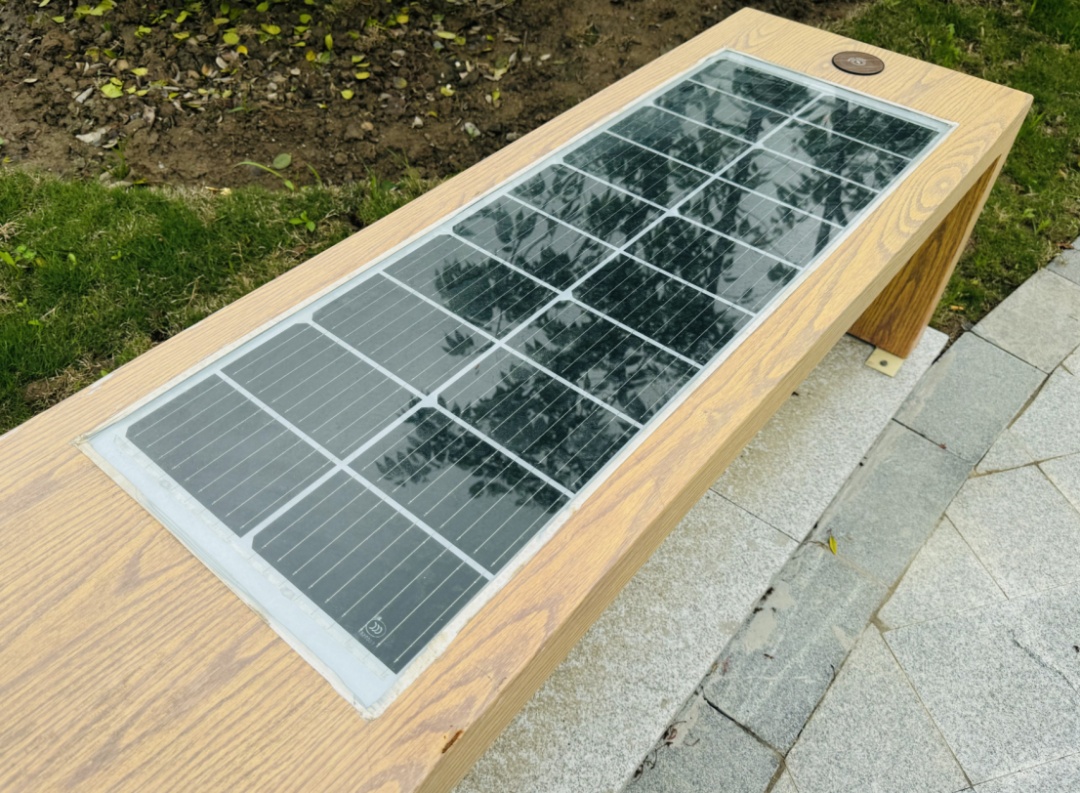 值得一提的是,绿地内的休憩座椅更是科技感满满。座椅与常见的座椅不同,玻璃面板下藏着一块光伏板,可为座椅蓄电;两侧分别有一处无线充电区,将手机放置在上面即可充电。山阳镇规建办工作人员张思绮表示,如果手机不具备无线充电功能,也无须担心,下面还有两个USB接口,可以为手机、平板充电。