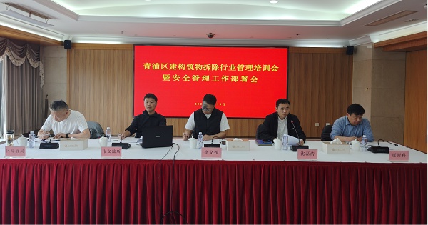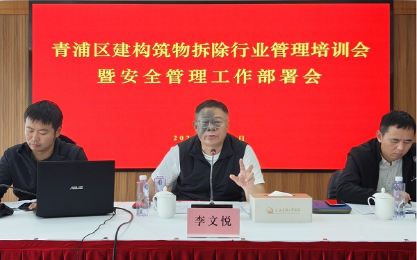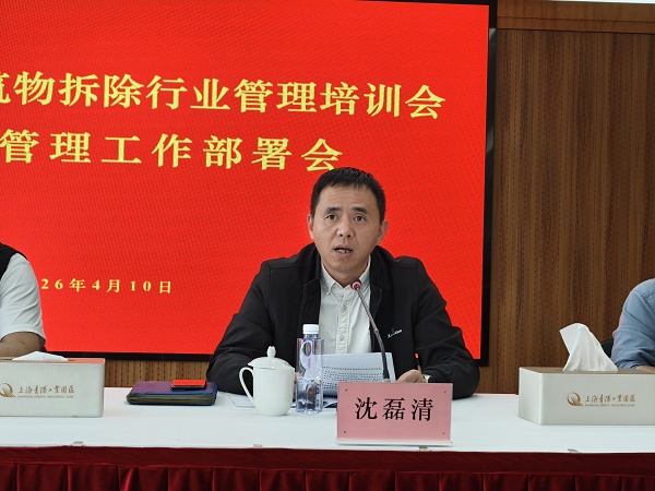 为深入贯彻落实市、区相关安全生产会议精神,全面提升青浦区建、构筑物拆除工程的安全管理水平,进一步规范青浦区建、构筑物拆除的管理及操作流程,4月10日下午,青浦区房管局召开2026年度青浦区建、构筑物拆除行业管理培训会暨安全管理工作部署会。会议邀请市安监所负责人到会指导,区房管局副局长沈磊清、各街镇分管领导、区绿容局市容环境管理中心,以及21家市属和区属房屋拆除企业负责人参加会议。
